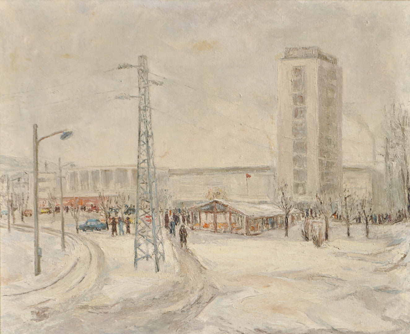 Maro Markov (* 1926) Cambio di turno, 1926;Olio su tela, 68,5 x 83 cm, in cornice