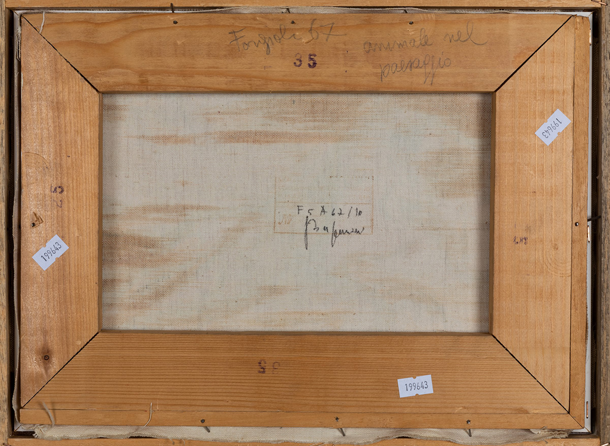 Attilio Forgioli (1933), Animali nel paesaggio, 1967, olio su tela, cm 25x35 firmato e datato in basso a destra firmato, intitolato e datato al retro