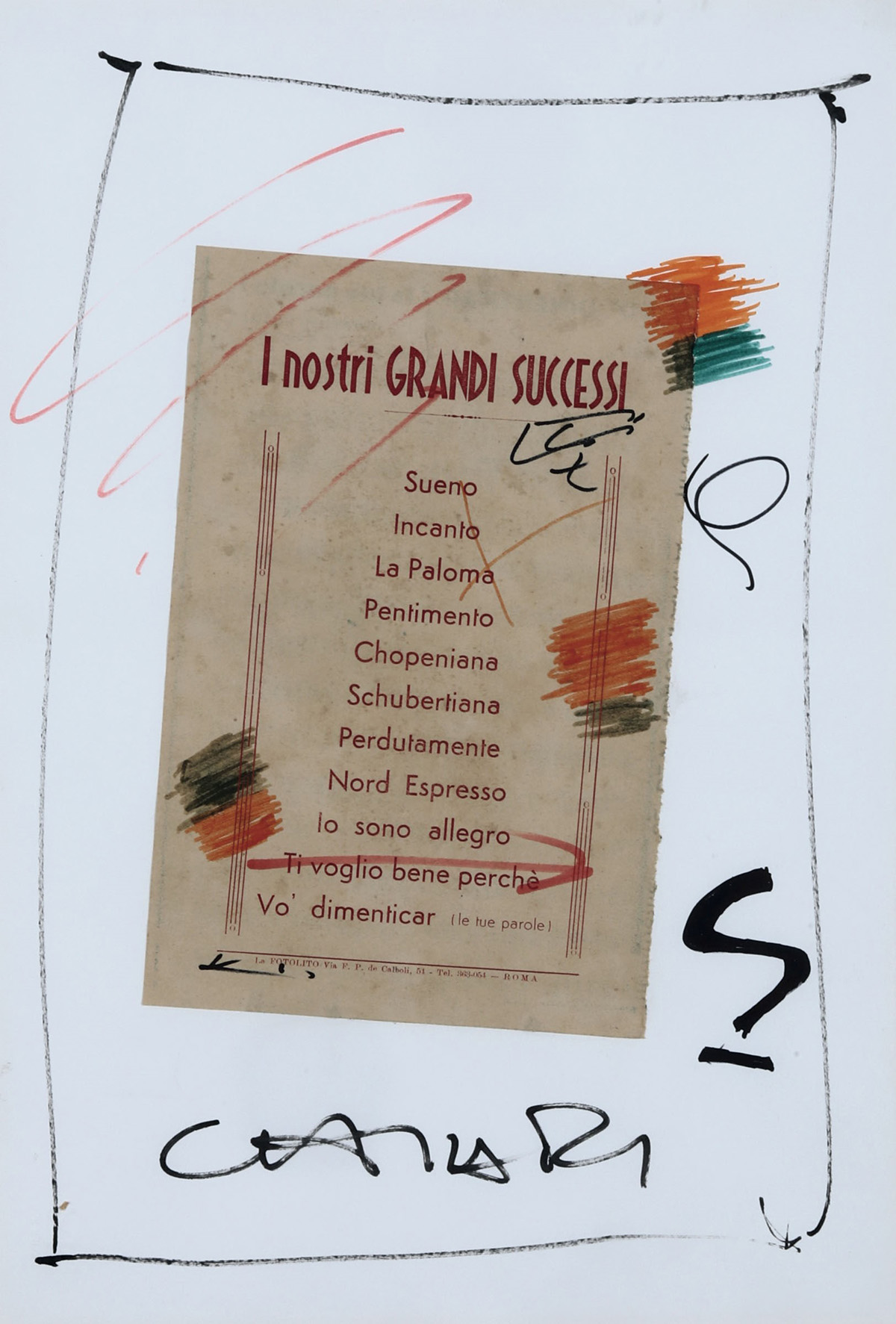 Giuseppe Chiari (1926 - 2007), Grandi successi, anni ‘90, pennarelli su carta, cm 46x31 firmato in basso al centro Opera registrata presso l’Archivio Giuseppe Chiari e Victoria Chiari, Firenze, con il n. 1960, in data 4 marzo 2015