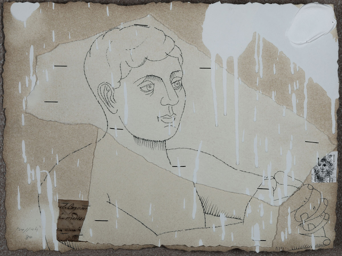 Concetto Pozzati (1935), Memoria, 1980, tecnica mista su cartone, cm 23x33 firmato e datato in basso a sinistra Opera registrata presso l’Archivio Generale Concetto Pozzati, Cesena, con il n. 2413/16