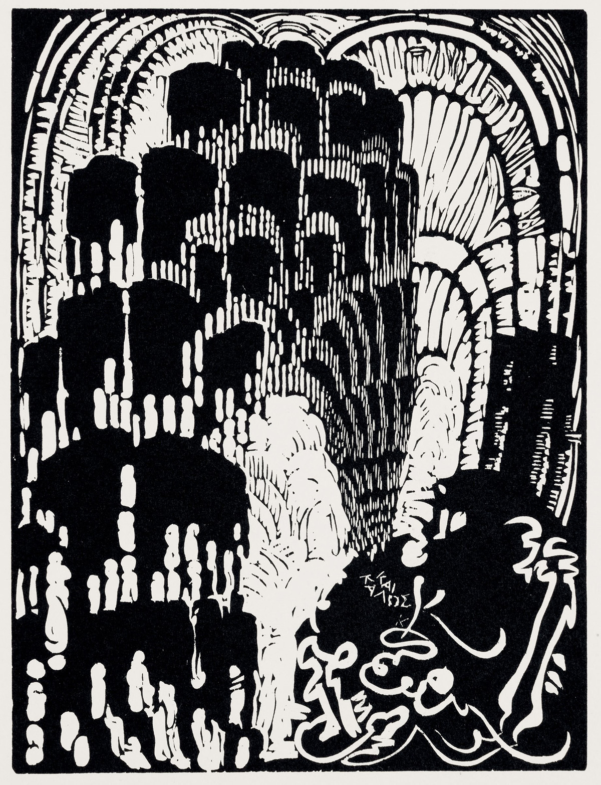 Frantisek Kupka (1871-1957), Quatres Histoires de Blanc et Noir, 1926, xilografia su carta, cm 20x15,2 firmata in basso a destra stampata su carta Arches de Lacourieé et Frelaut a Parigi. Tiratura di 100 esemplari come da catalogo. , Provenienza: Galleria Flinker, Parigi