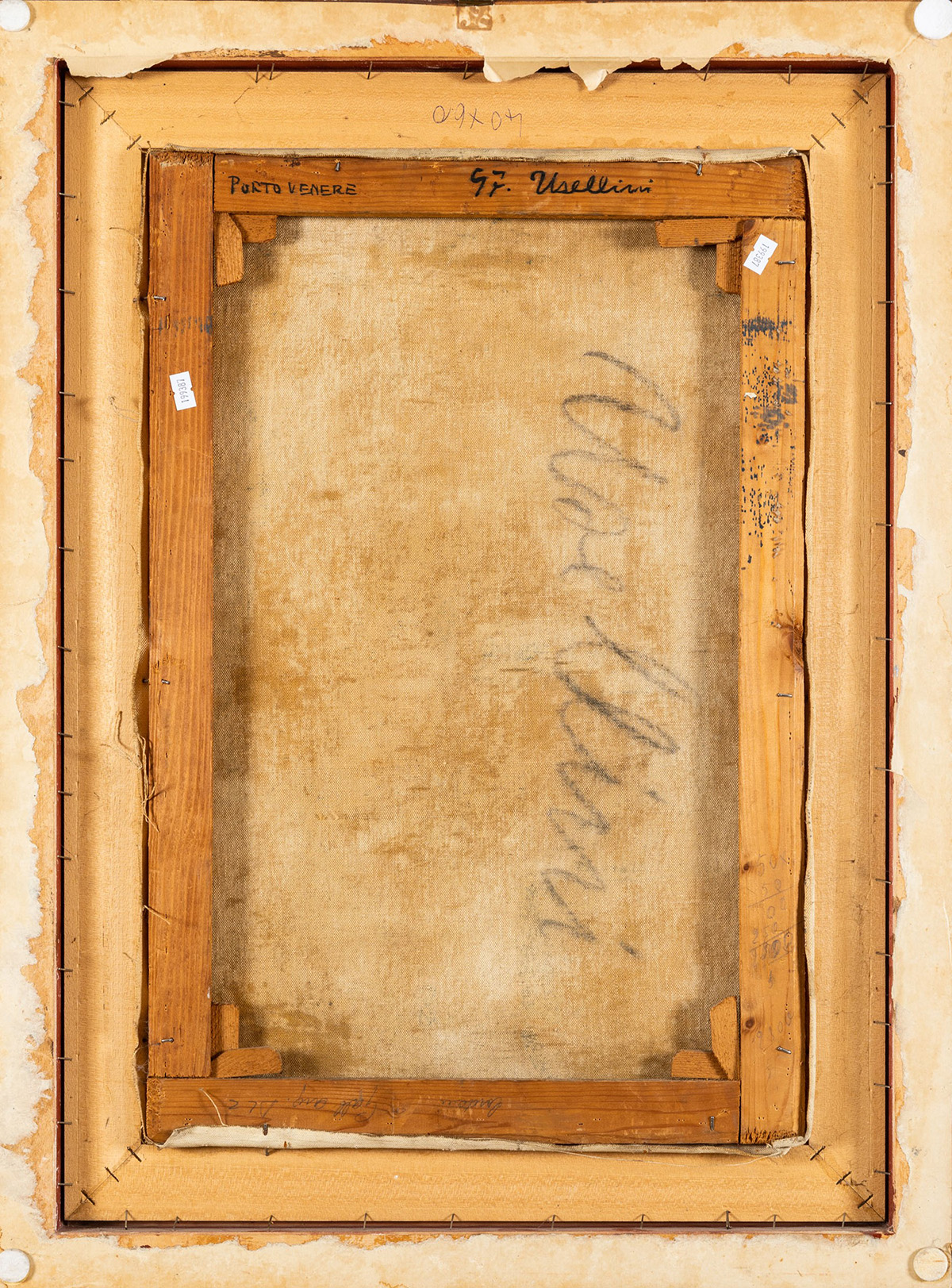 Gianfilippo Usellini (1903-1971), Porto Venere, 1950, olio su tela, cm 60x40 firmato in basso a sinistra firmato e intitolato al retro L’opera verrà inserita nel Catalogo Generale dell’opera di Gianfilippo Usellini di prossima pubblicazione a cura di Luigi Sansone