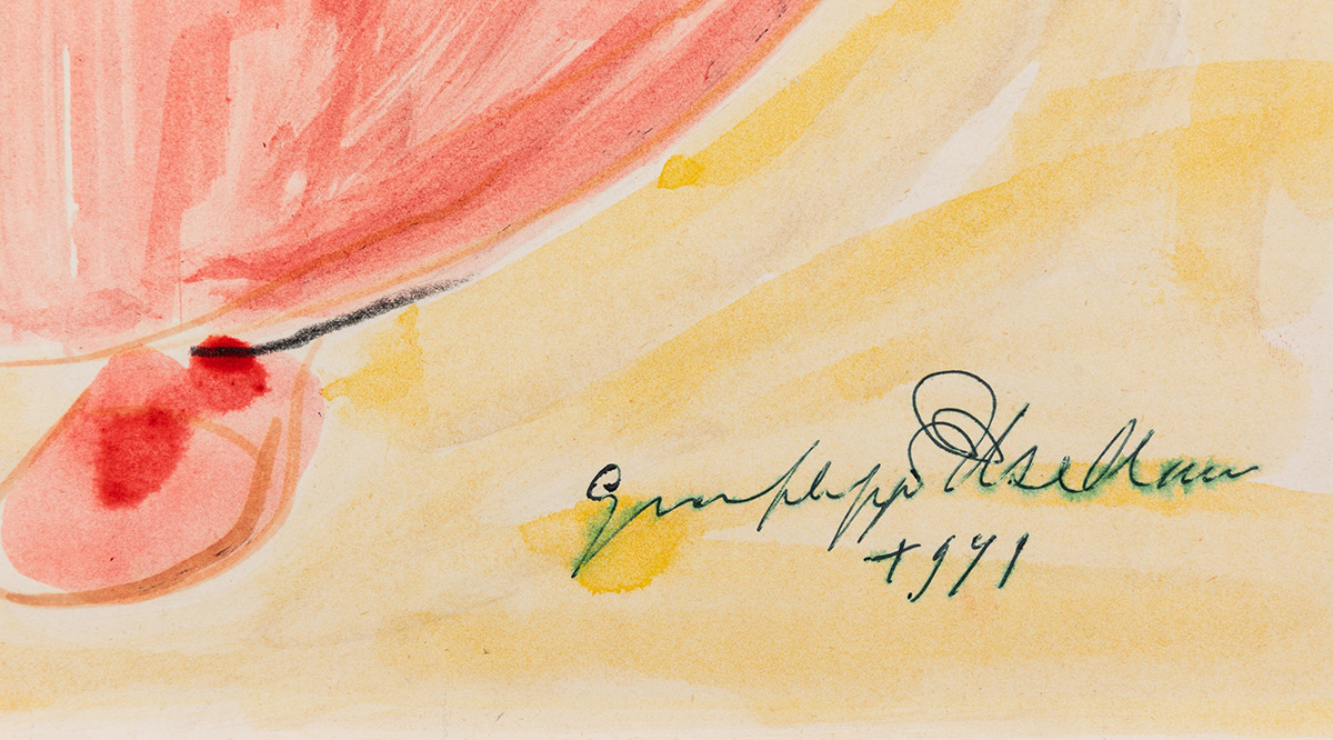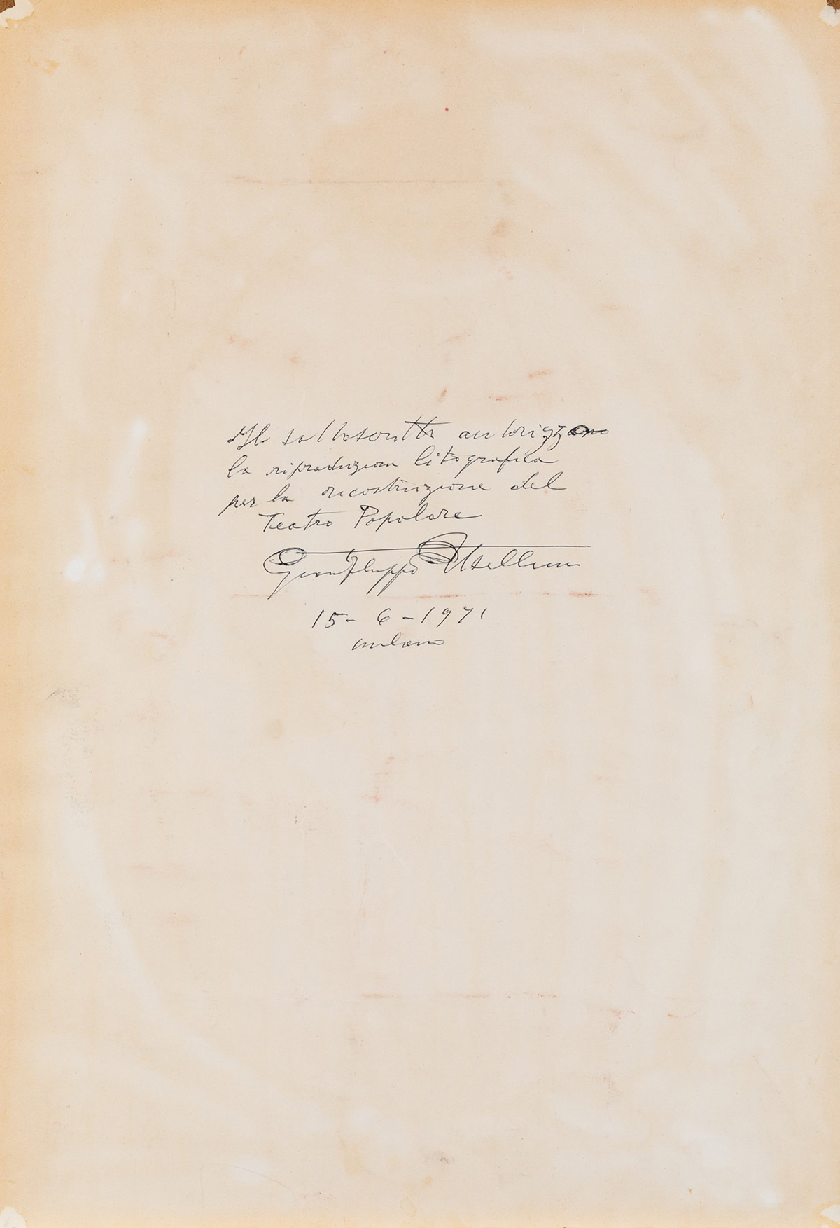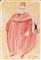 Gianfilippo Usellini (1903-1971), Cardinale, 1971, china a colori su carta, cm 63,5x44 firmata e datata in basso a destra firmata e datata al retro , Da questo bozzetto è stata tratta la riproduzione per il Teatro Popolare di Milano