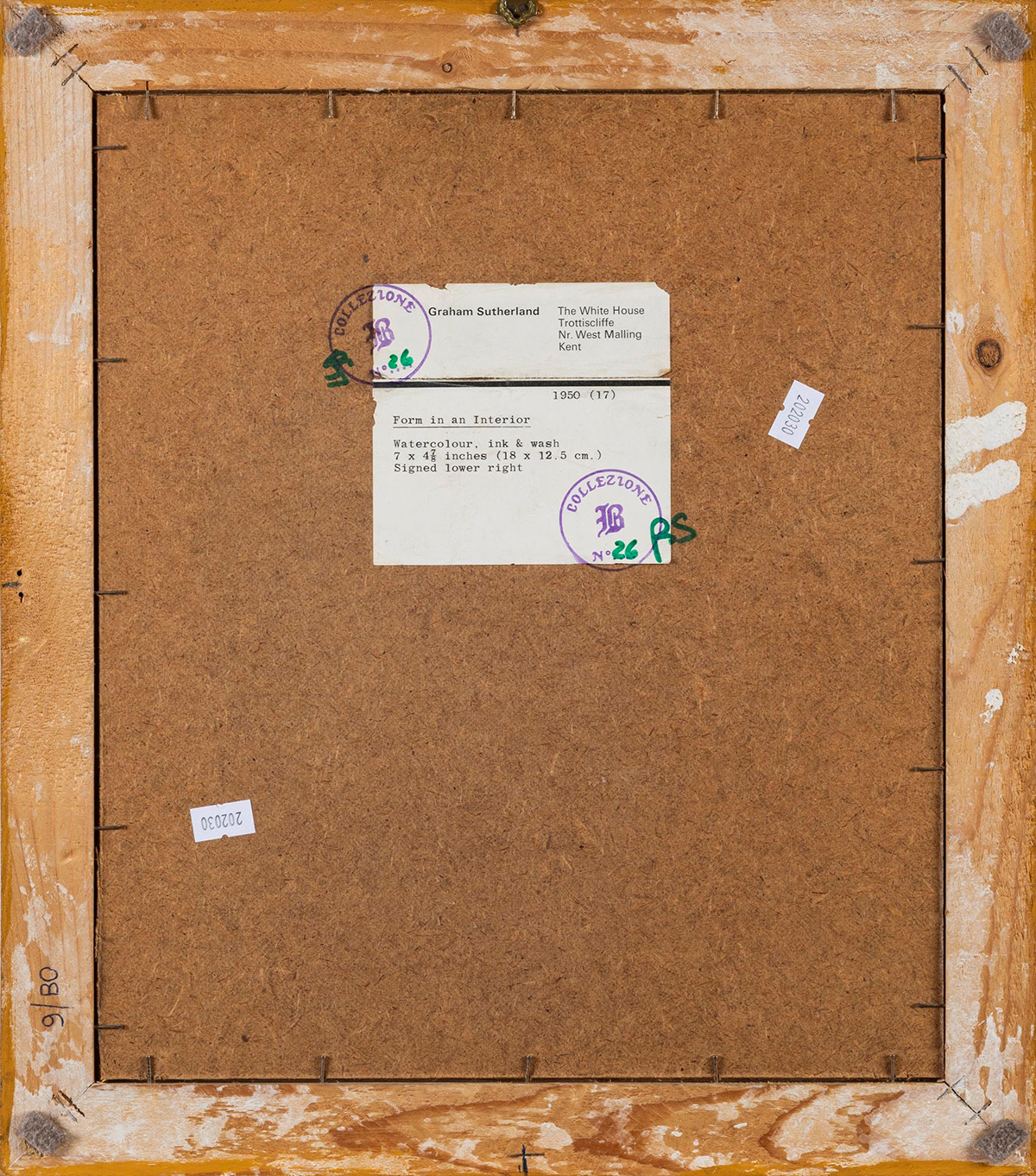 Graham Sutherland (1903-1980), Form in an Interior, 1950, acquerello e inchiostro su carta, cm 18x12,5 firmato in basso a destra , Provenienza: Galleria Bergamini, Milano