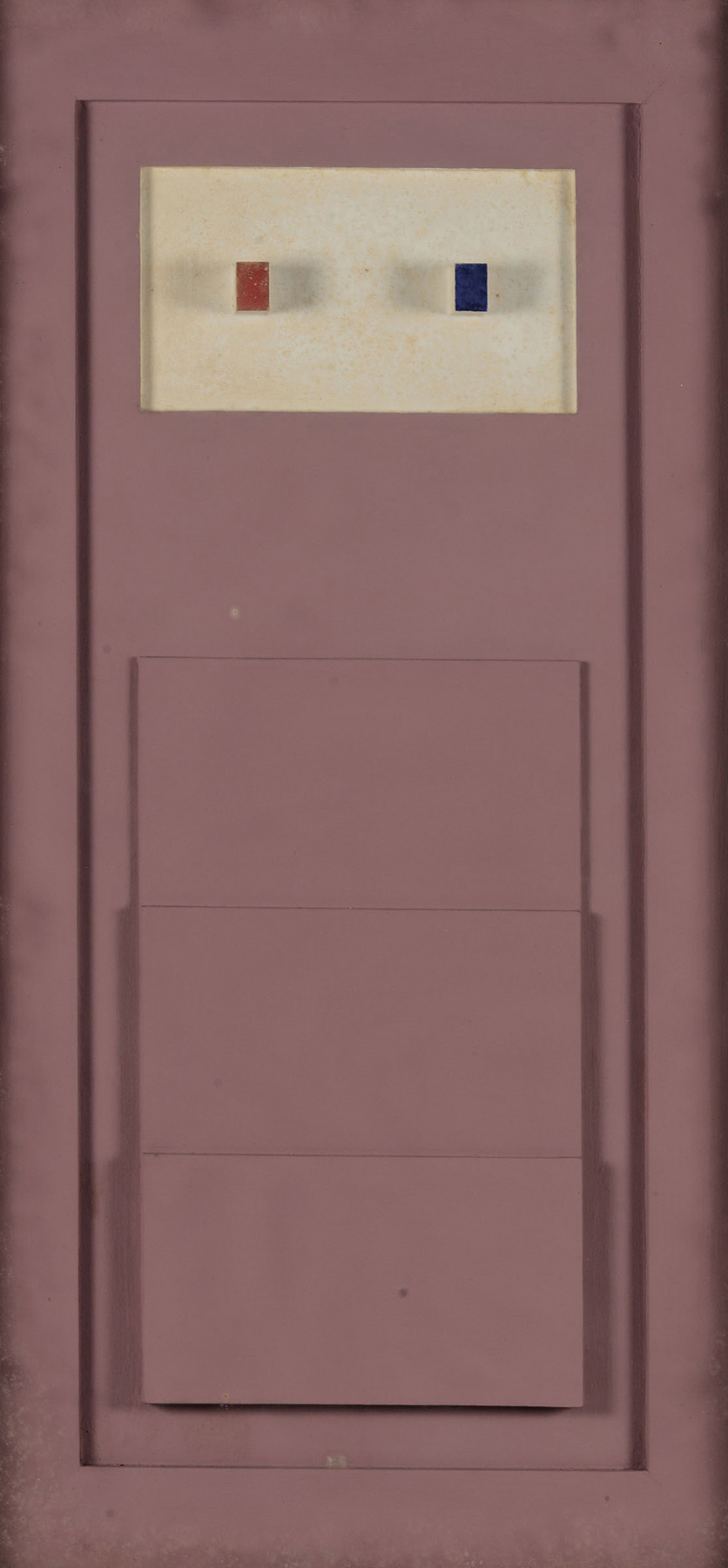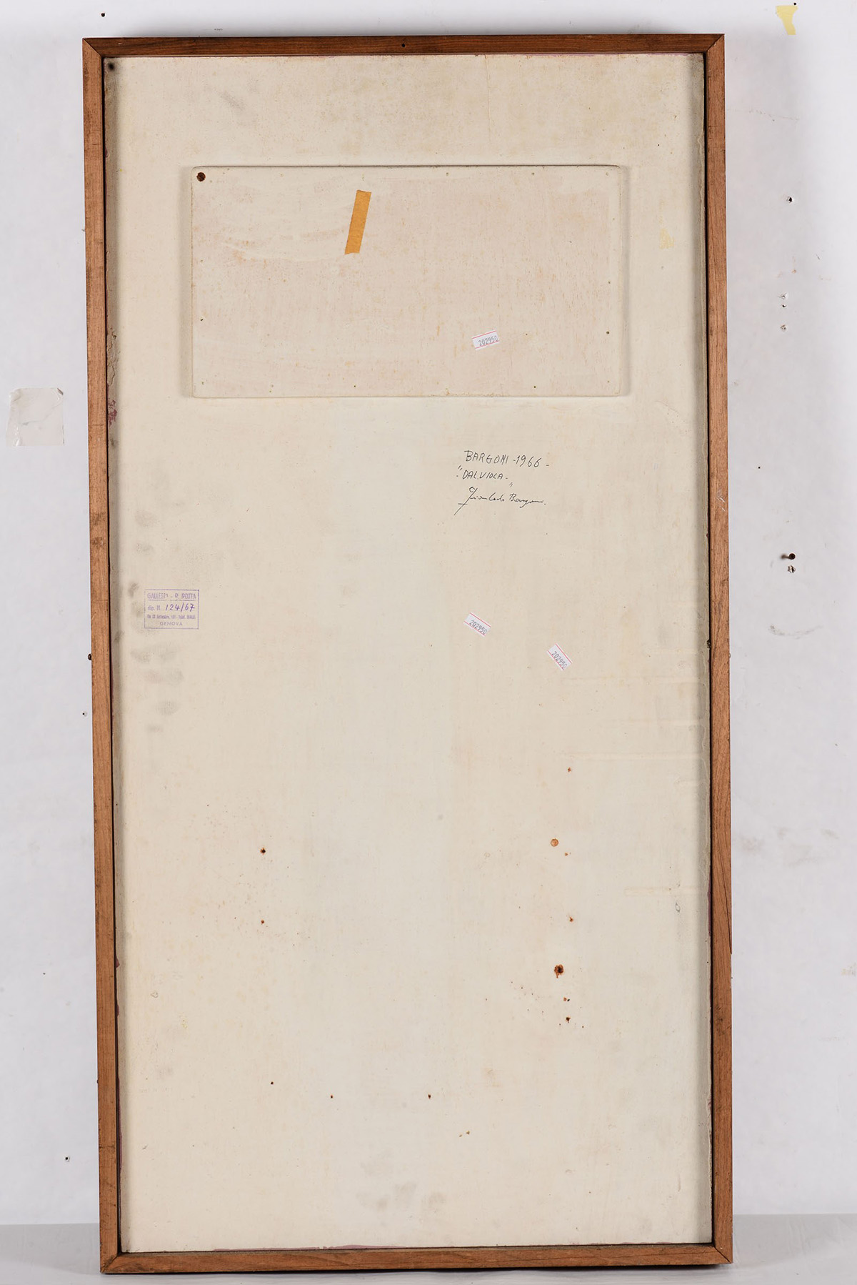 Giancarlo Bargoni (1936), Dal viola, 1966, olio e tecnica mista su tavola, cm 100x50 firmato, intitolato e datato al retro Timbro al retro della Galleria Rinaldo Rotta, Genova,