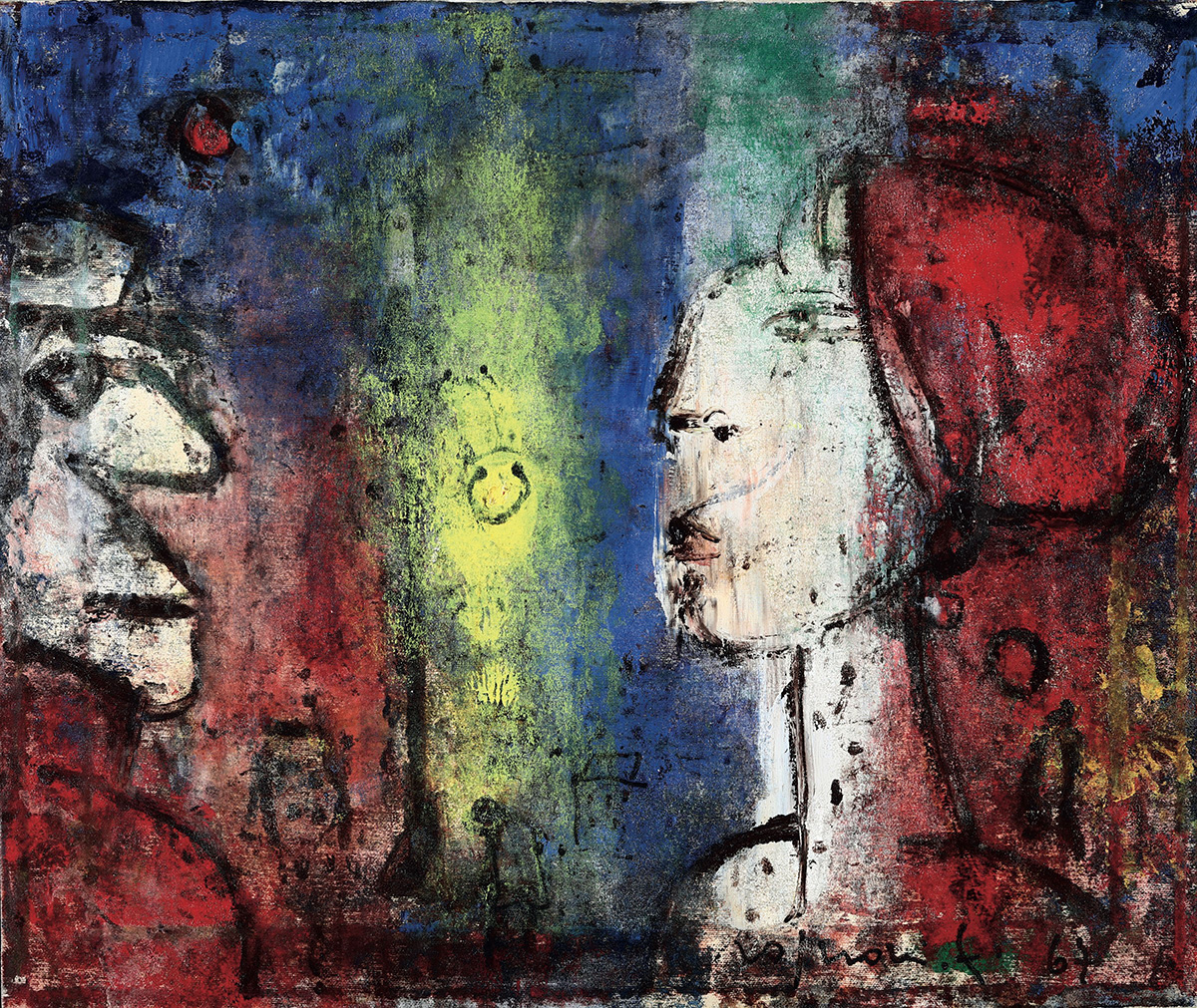 Franco Rognoni (1913-1999), Uomo con la Luna, 1967, olio su tela, cm 46x54 firmato e datato in basso a destra