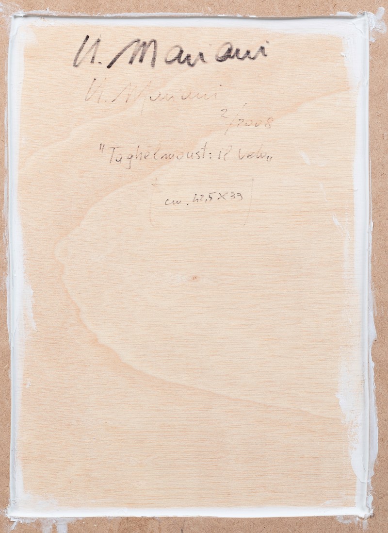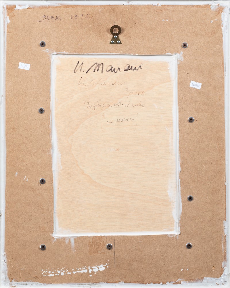 Umberto Mariani (1936), Taghelmoust: il velo, 2/2008, tecnica mista su tavoletta, cm 42,5x33 firmato, intitolato e datato al retro Autentica su fotografia dell’artista