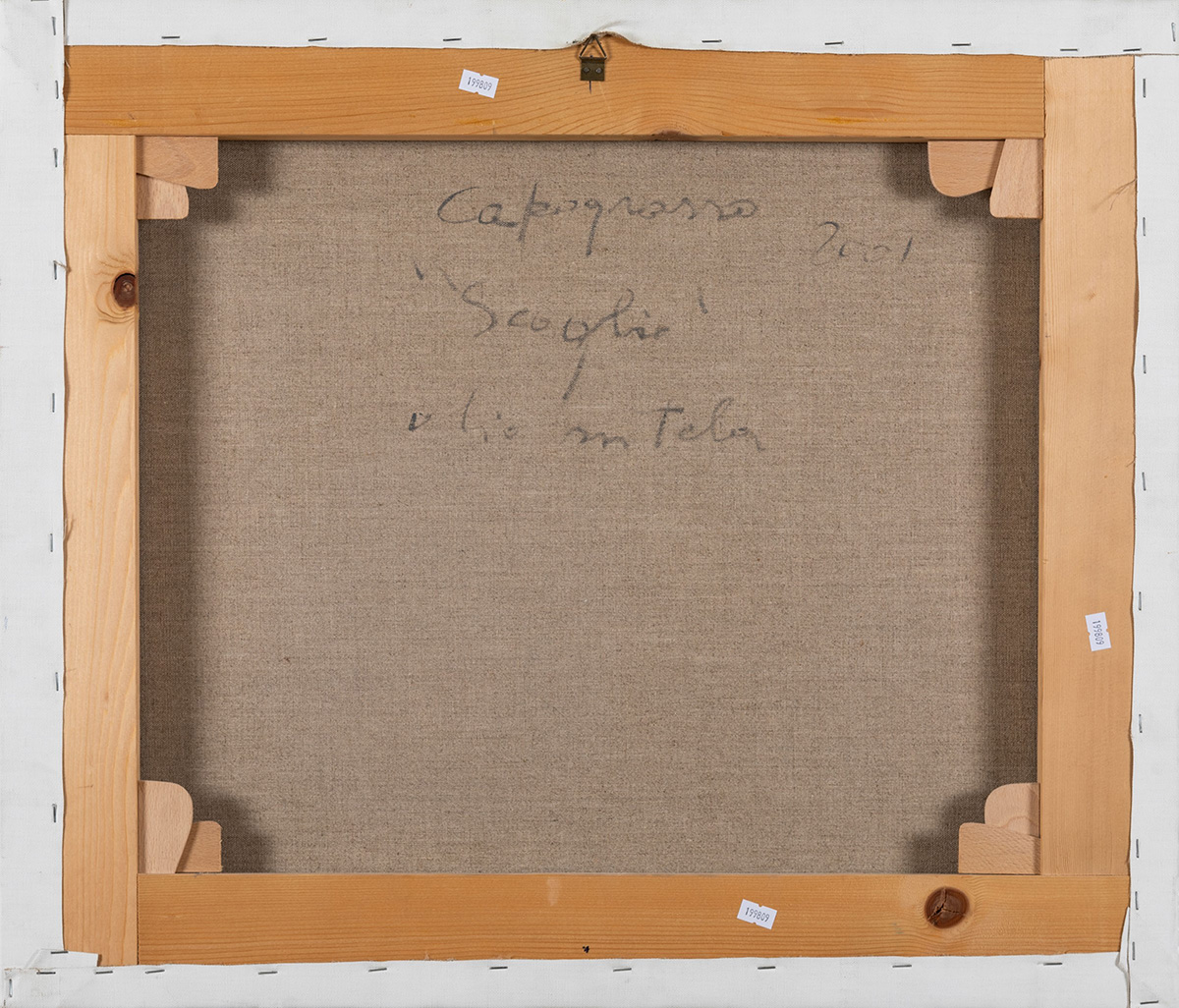Pietro Capogrosso (1967), Scogli, 2001, olio su tela, cm 60x70 firmato, intitolato e datato al retro, Provenienza: Collezione privata, Roma Galleria Oddi Baglioni, Roma Esposizioni: “Andare lenti”, Galleria Oddi Baglioni, Roma, 2002, ripr. a cat. p. 8