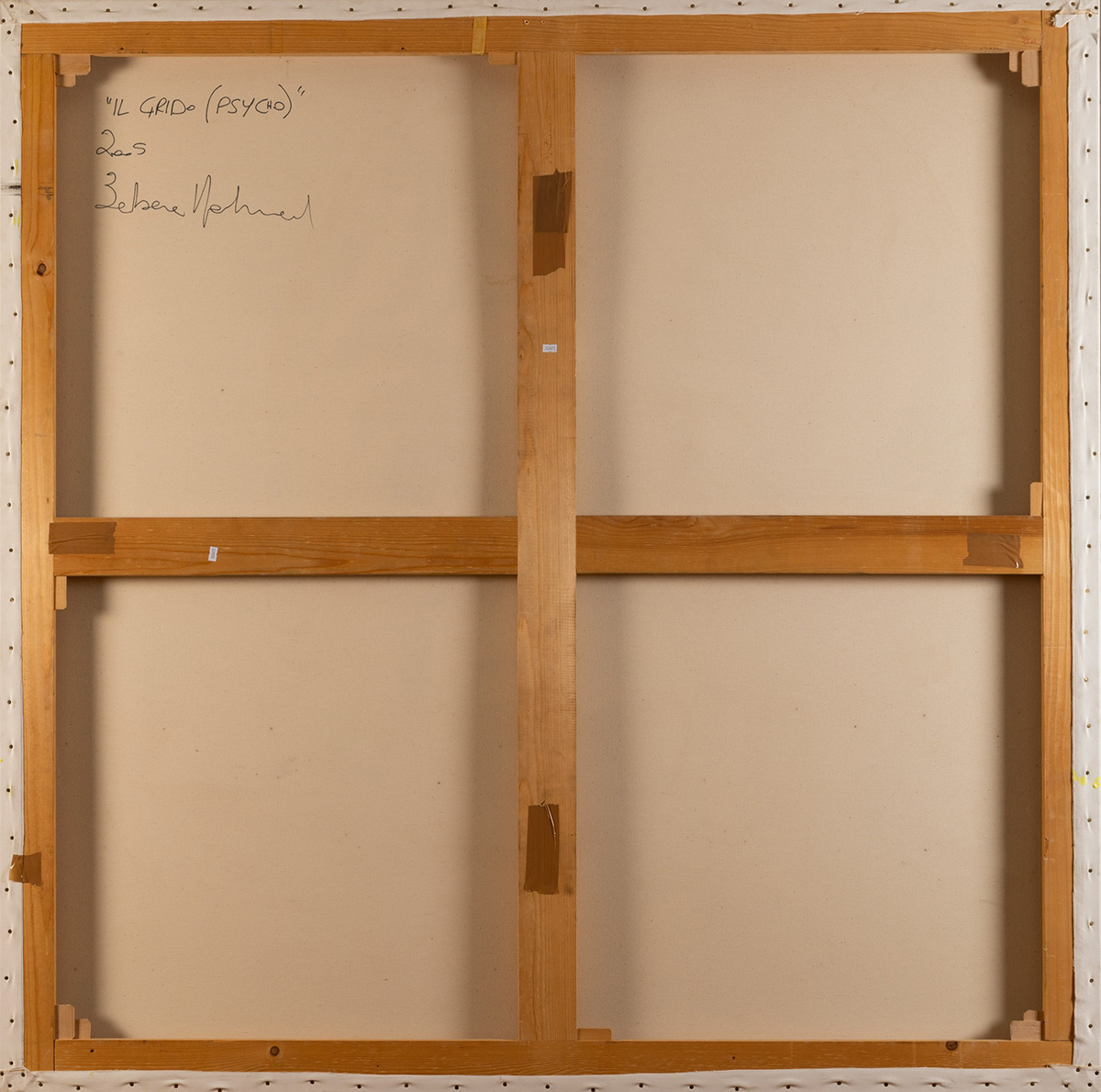 Barbara Nahmad (1967), Il grido (Psyco), 2005, olio e smalto su tela, cm 170x170 firmato, intitolato e datato al retro, Bibliografia: AAVV, Delle dissonanze this is not propaganda. Arte Contemporanea Italiana - Collezione Antonio Stellatelli, ’AE L’Artistica Editrice, Savigliano, 2012, p. 108