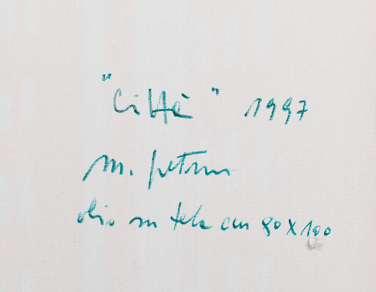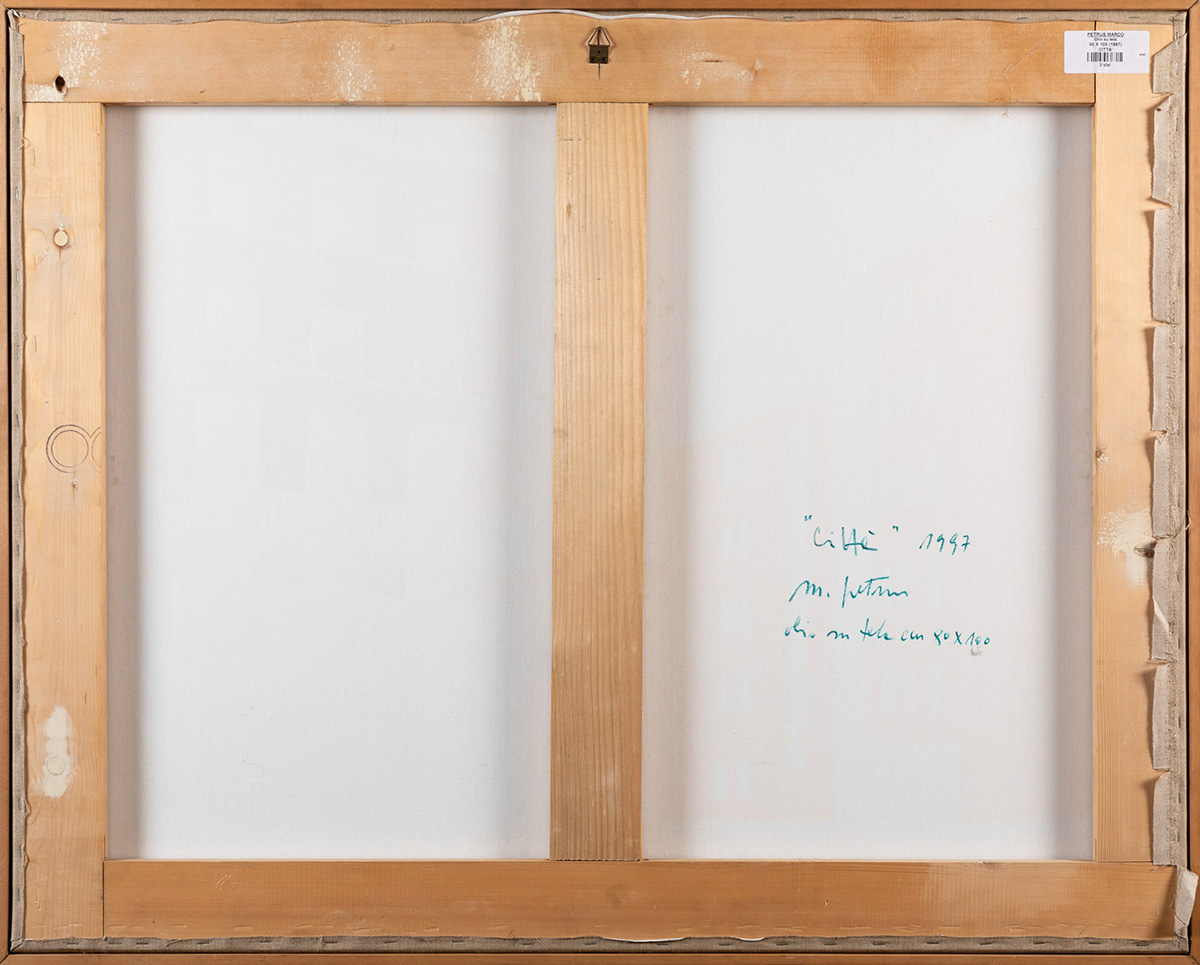 Marco Petrus (1960), Città, 1997, olio su tela, cm 80x100 firmato, intitolato e datato al retro, Bibliografia: AAVV, Delle dissonanze this is not propaganda. Arte Contemporanea Italiana - Collezione Antonio Stellatelli, ’AE L’Artistica Editrice, Savigliano, 2012, p. 124