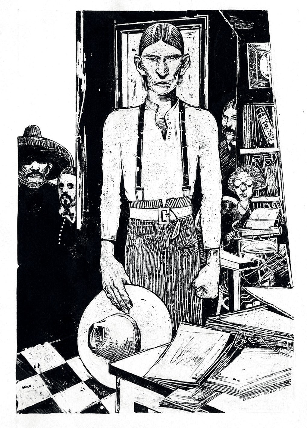 Enrique Breccia (1945), Il Messicano di Jack London, China su cartoncino. Cm 23x35,5. Illustrazione per una delle storie dedicate al mondo della boxe pubblicate in Jack London – Knock out, edito da Libros de Zorro Rojo, 2011. Ottimo stato, firmata.