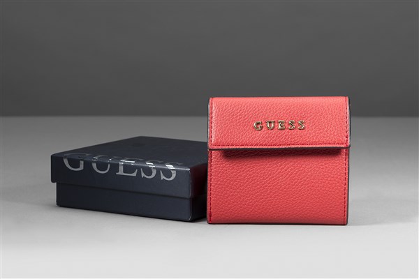 GUESS Piccolo portafoglio logato in pelle rossa, confezione originale