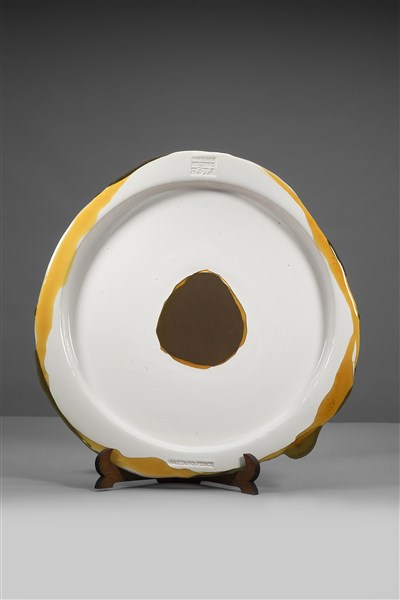 Resina bianca e giallo ambra. Firmato e marcato (cm diam 31)