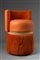 Seduta imbottita di forma cilindrica a due settori rivestita in velluto capitonné ed ecopelle di colore "arancione Hermès", fascia in ottone lucidato con logo.