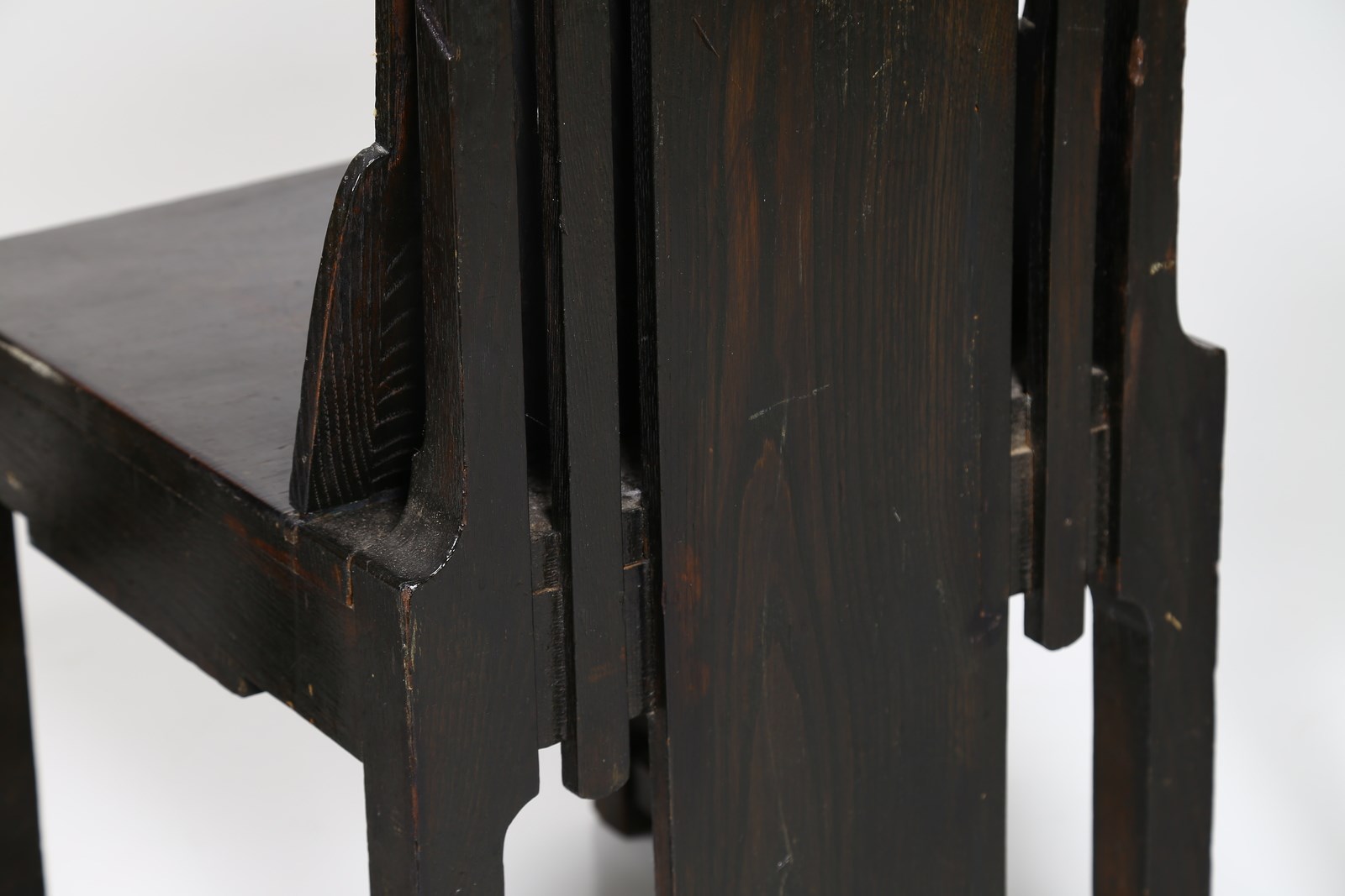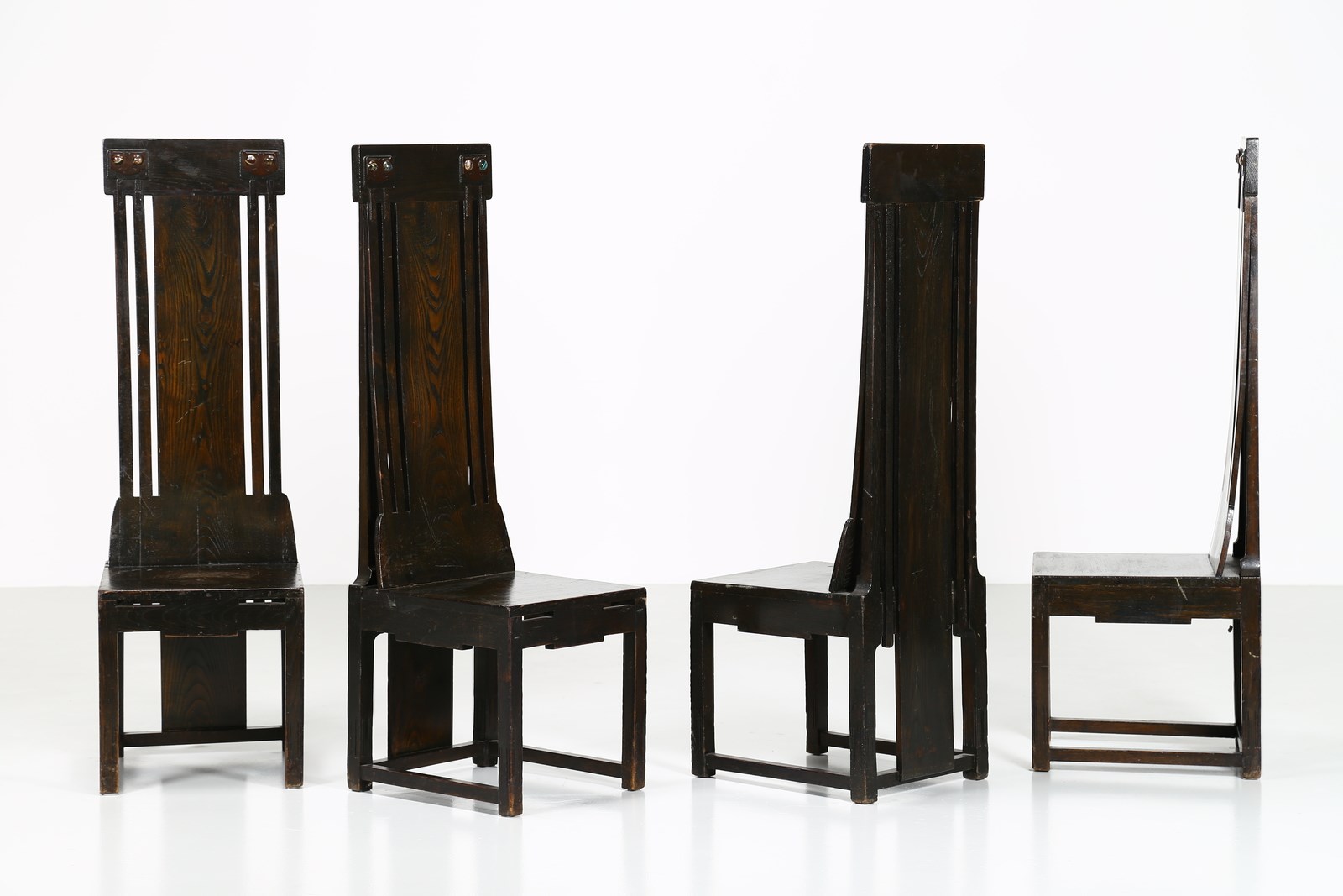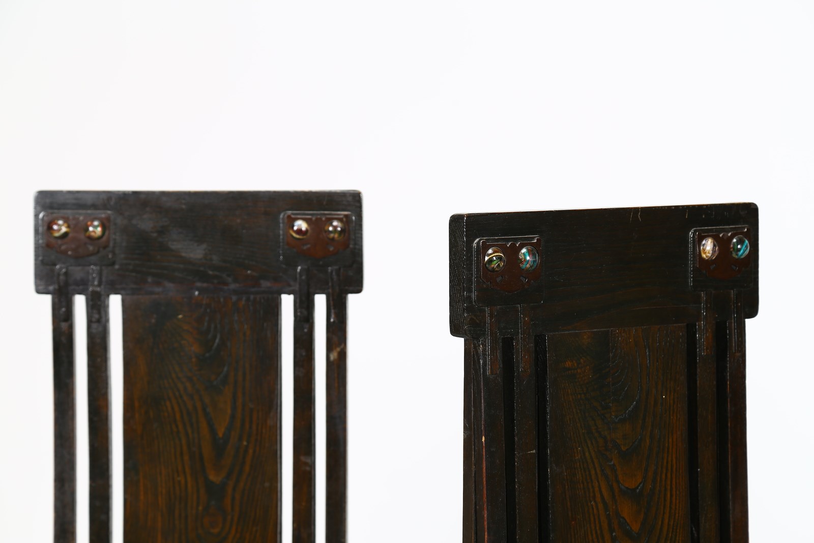 EDNIE JOHN (1876 - 1934) Attrib. Quattro sedie. Legno laccato. Cm 41,50 x 134,50 x 47,50. Glasgow School, primi del 900. Struttura in legno laccato con importanti dettagli in pietra.