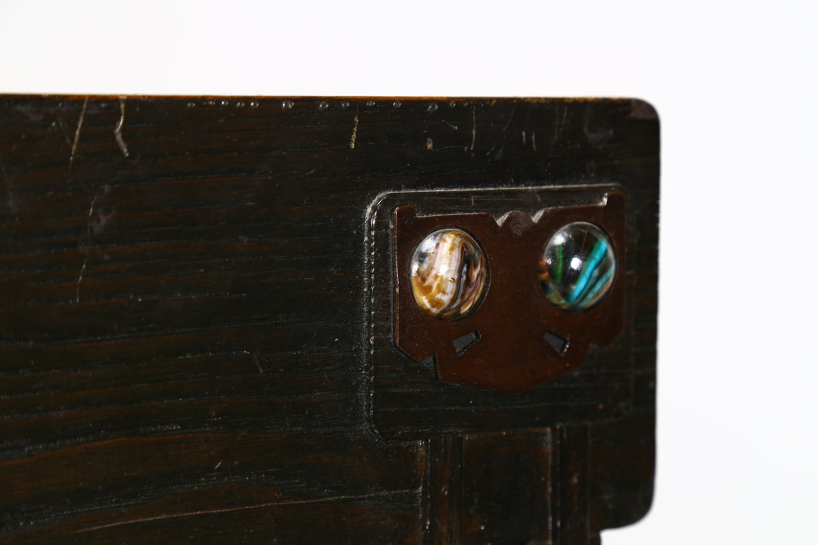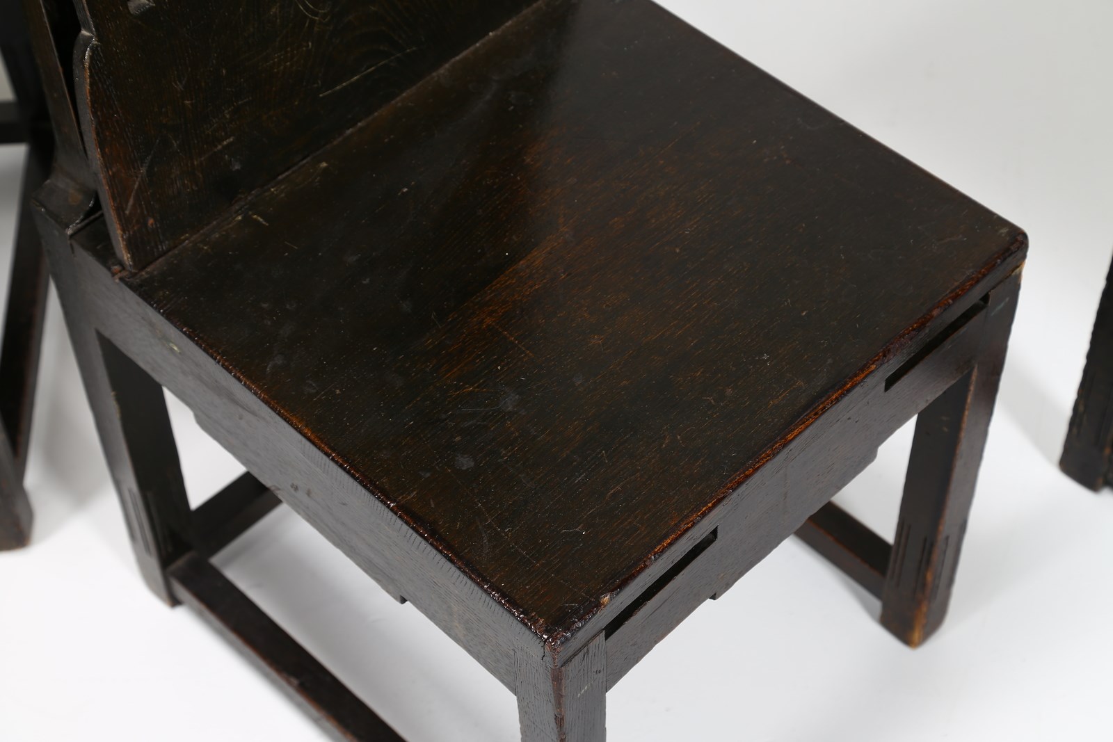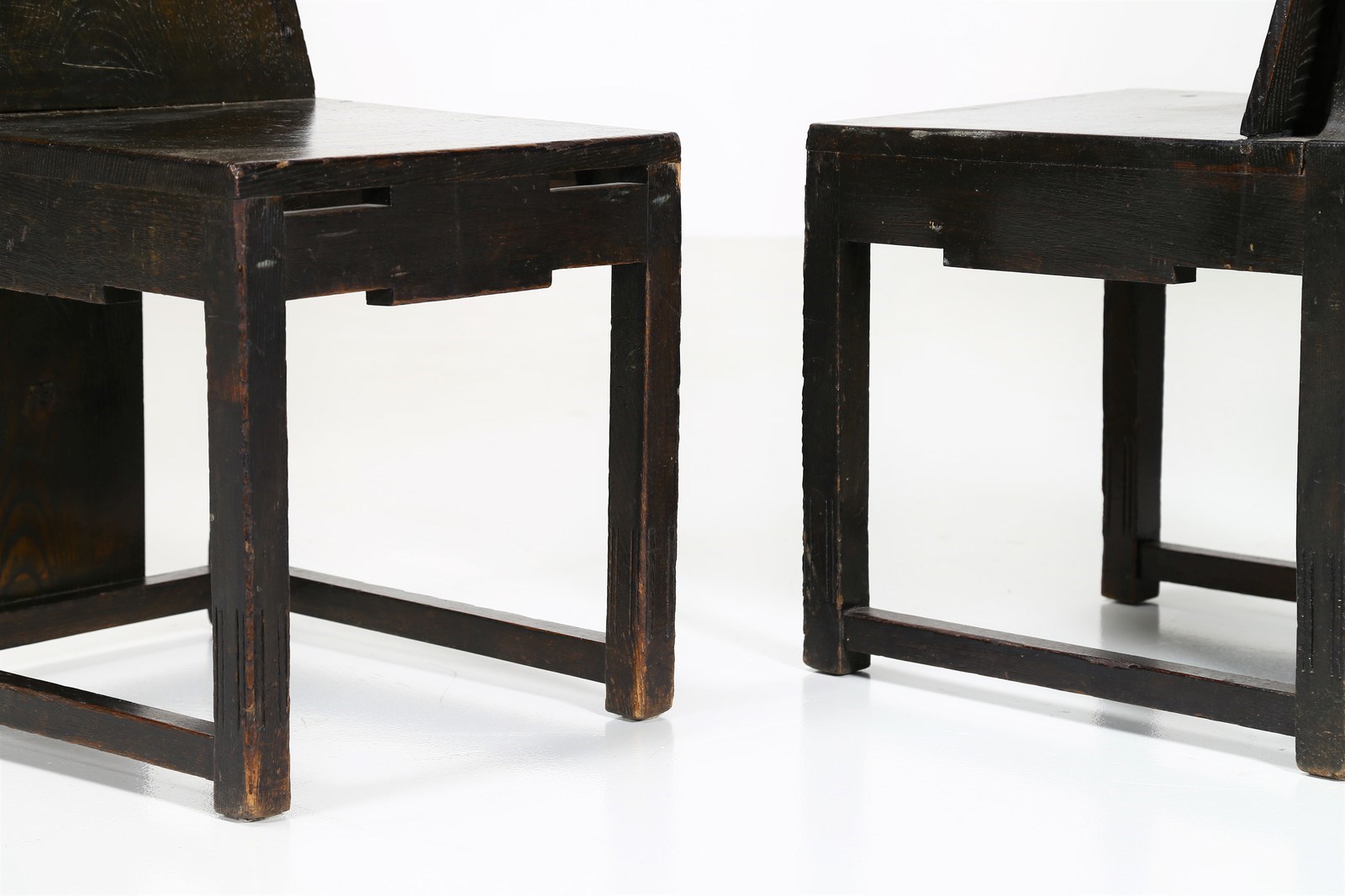 EDNIE JOHN (1876 - 1934) Attrib. Quattro sedie. Legno laccato. Cm 41,50 x 134,50 x 47,50. Glasgow School, primi del 900. Struttura in legno laccato con importanti dettagli in pietra.