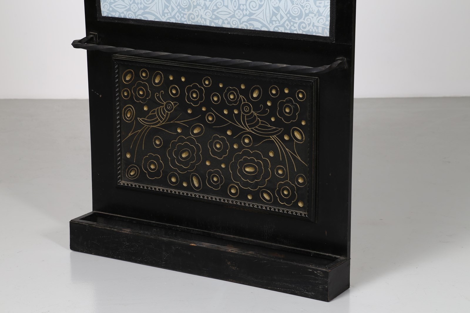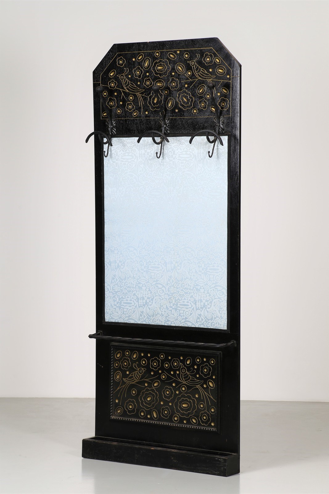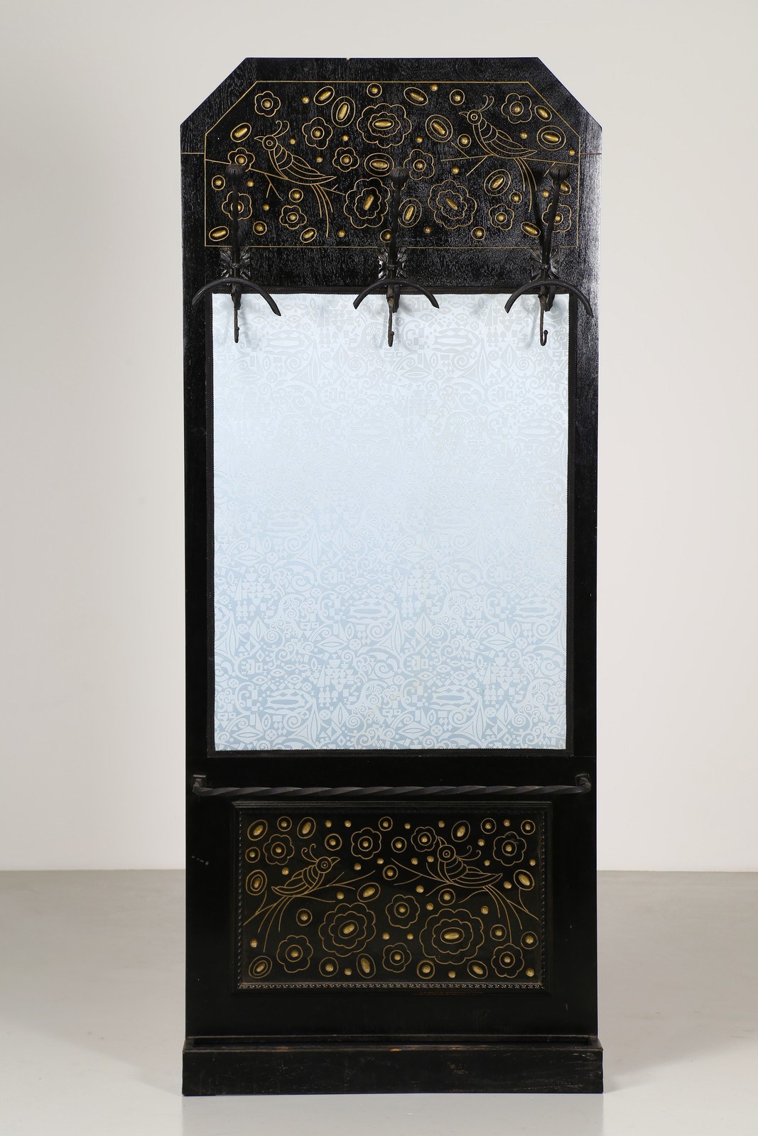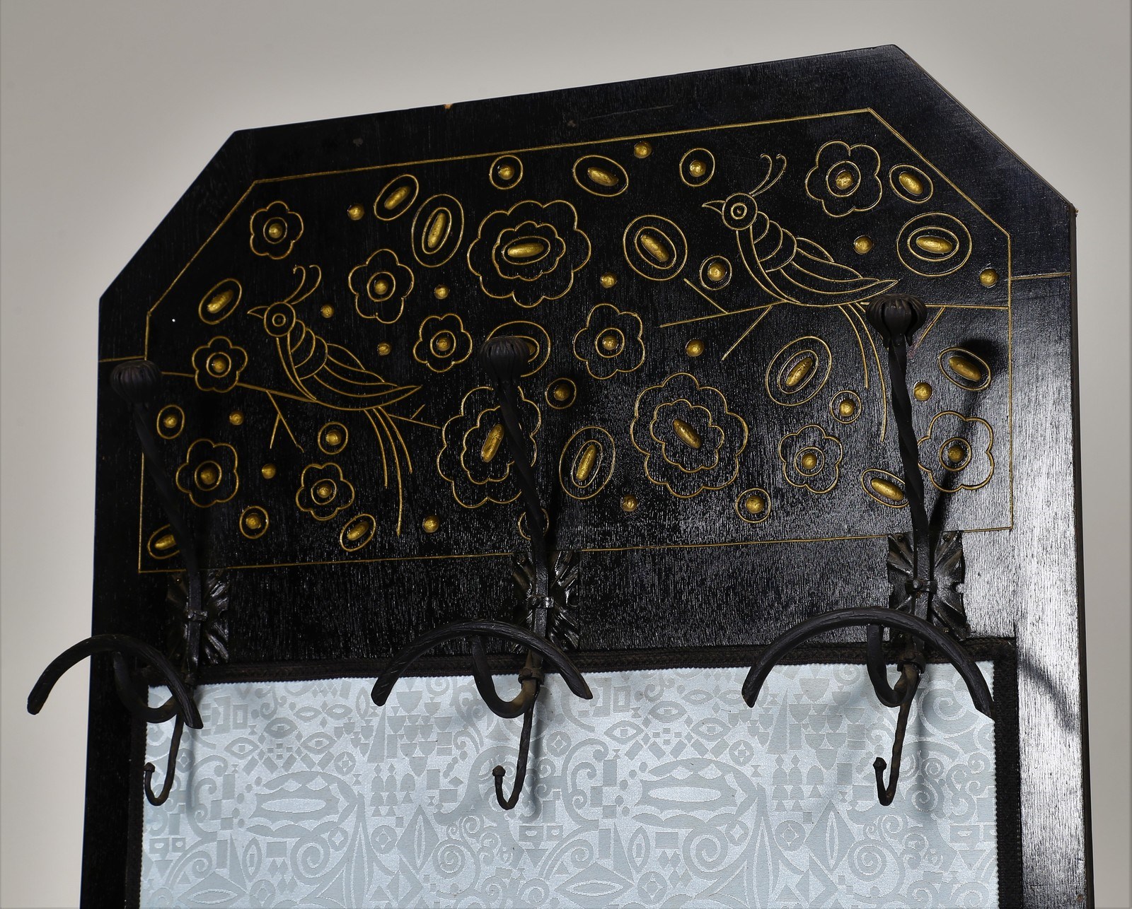 ZECCHIN VITTORIO (1878 - 1947) Appendiabiti. Legno. Cm 92,00 x 224,00 x 15,00. Appendiabiti in legno pirografato e dorato, produzione veneziana, anni 20.
