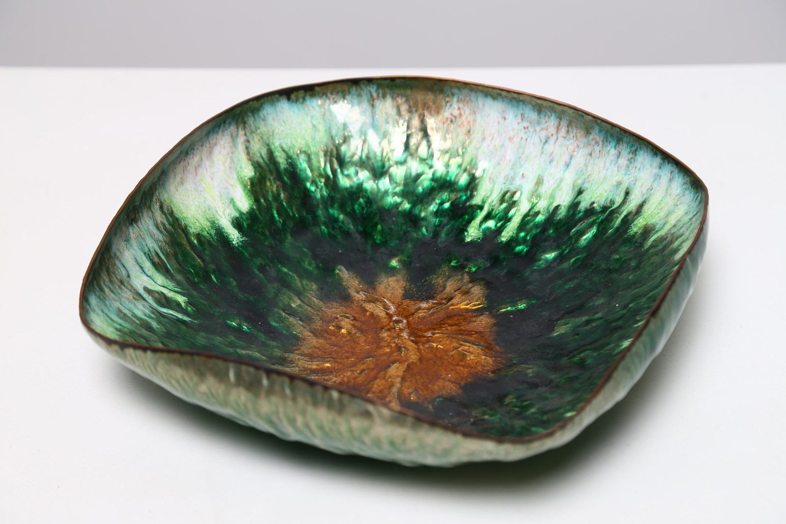 DE POLI PAOLO (1905 - 1996) Ciotola. Rame smaltato. Cm 25,00 x 8,00 x 25,00. Ciotola in rame smaltato anni 60, firma alla base.