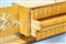 GARIBOLDI GIOVANNI (1908 - 1971) Attrib. Credenza. Legno, pergamena e ottone. Cm 165,00 x 67,50 x 45,00. Struttura in legno con rivestimento in pergamena decorata, dettagli in ottone e piano in vetro. Anni 40/50.