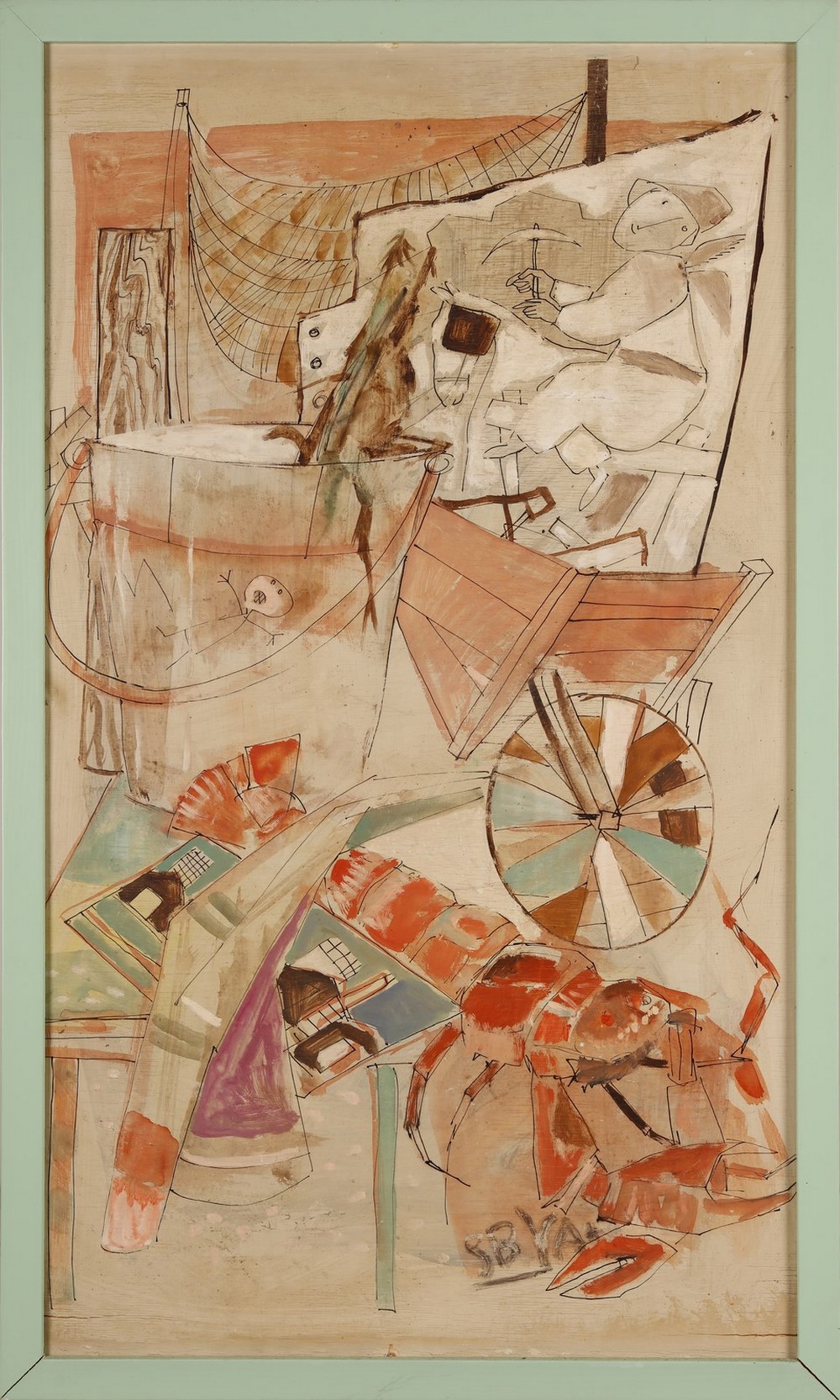 VALENTINI NANNI Senza titolo (Trittico). Tecnica mista su tavola. Cm 46,50 x 79,00. Trittico a tecnica mista su tavola, realizzato della sua amica personale, dall'architetta e pittrice Luisa Premuda Missiroli a decorazione delle ante di un armadio per la sua casa di Pesaro nel 1958.. Cornice presente