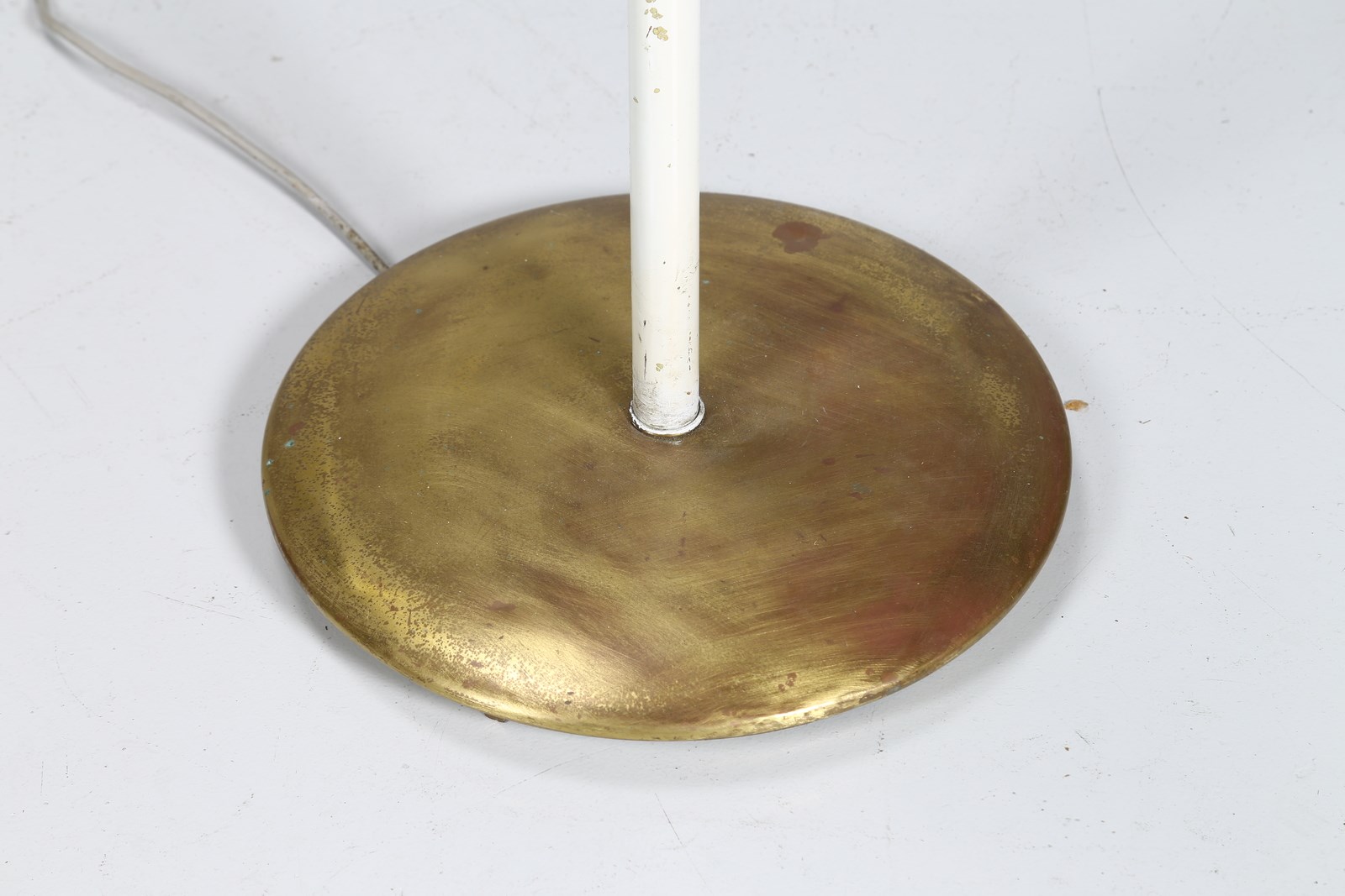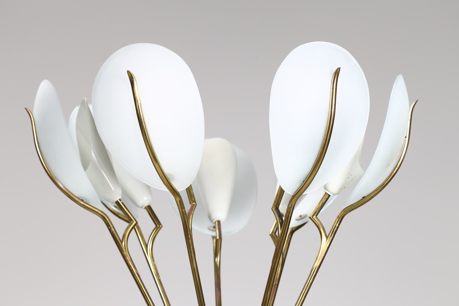 LELII ANGELO (1911 - 1979) Lampada da terra. Metallo, vetro e ottone. Cm 35,00 x 190,00 x 35,00. Lampada da terra , per Arredoluce, anni 50. Base in ottone, stelo in metallo laccato e diffusori a petali in vetro. Pubblicazioni: Pansera A., Padoan A., Palmaghini A, ARREDOLUCE-Catalogo ragionato 1943-1987, Silvana Editoriale, Milano, 2018, p. 298