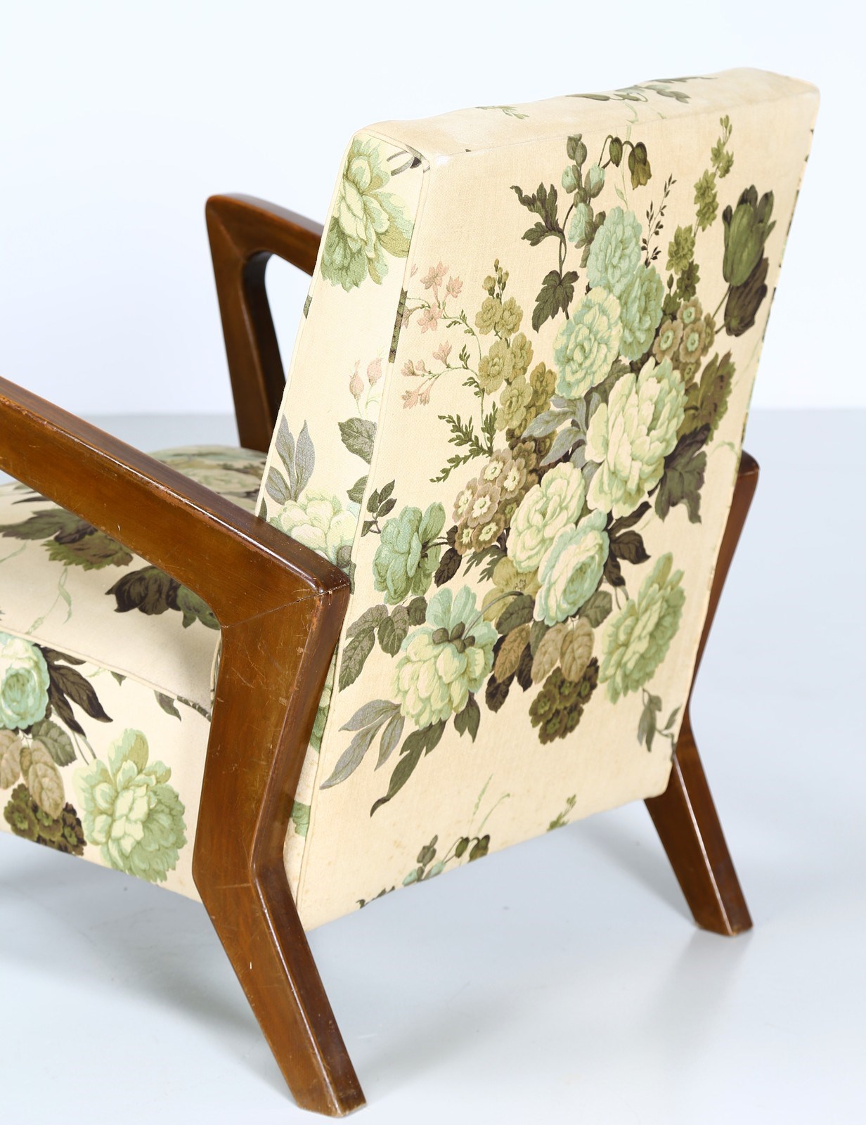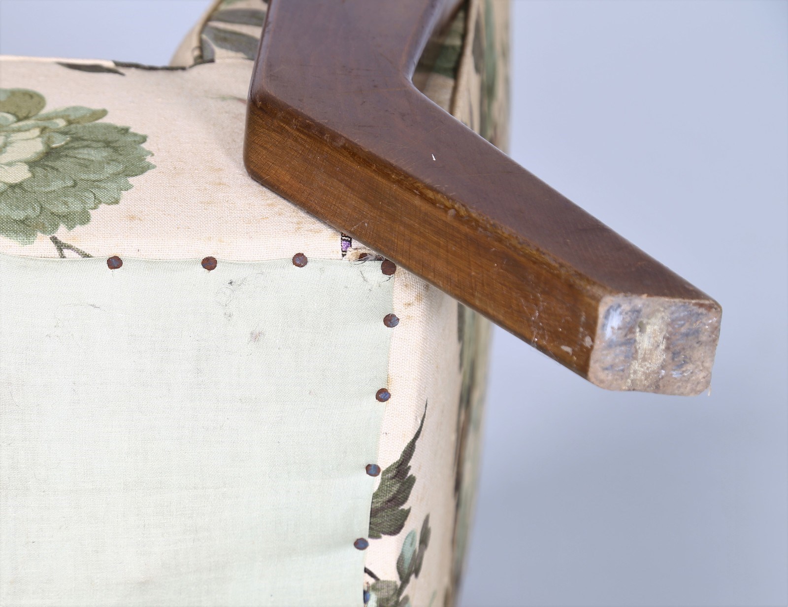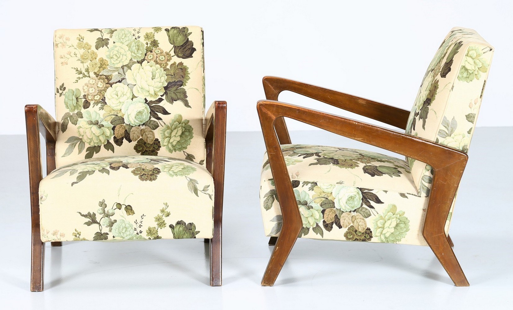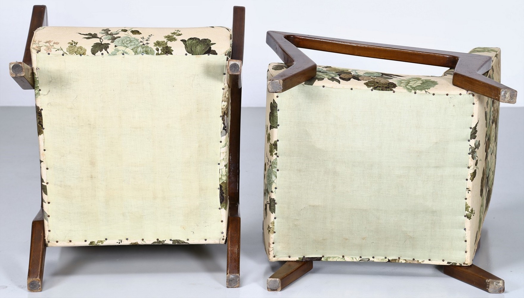 PONTI GIO (1891 - 1979) Coppia di poltrone. Tessuto e legno. Cm 68,00 x 81,50 x 72,00. Coppia di poltrone con intelaiatura in legno, imbottitura e rivestimento in tessuto originale, anni 50.