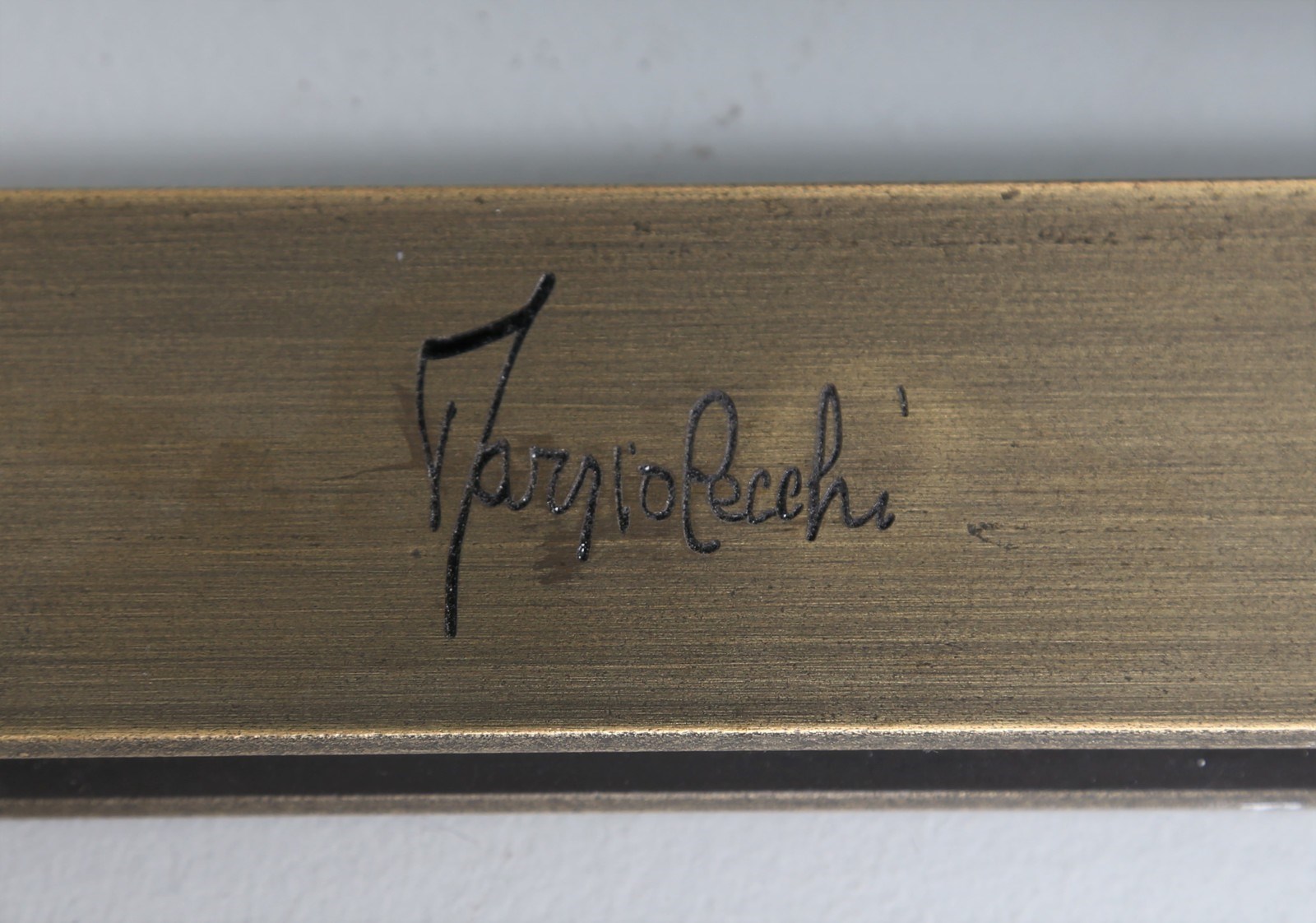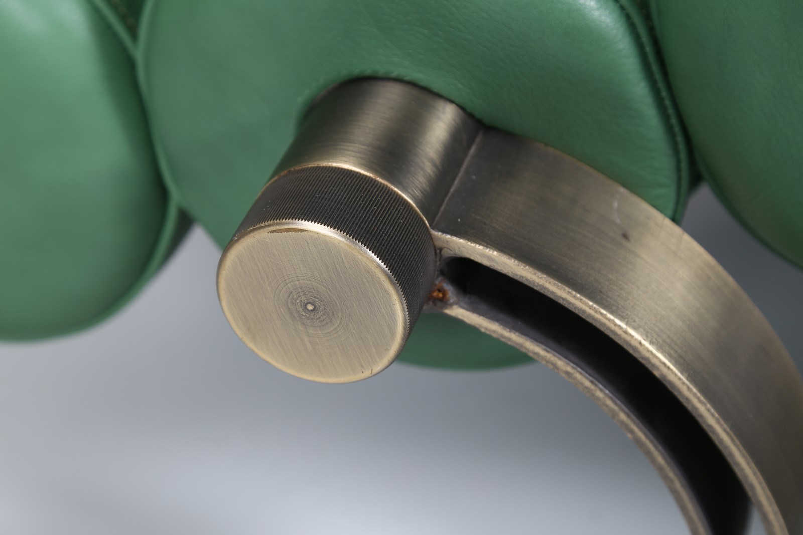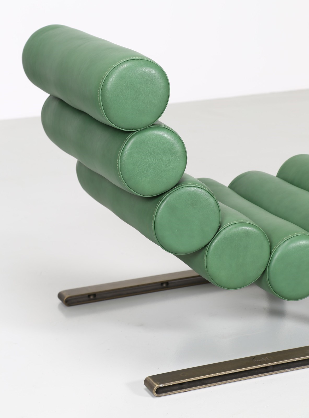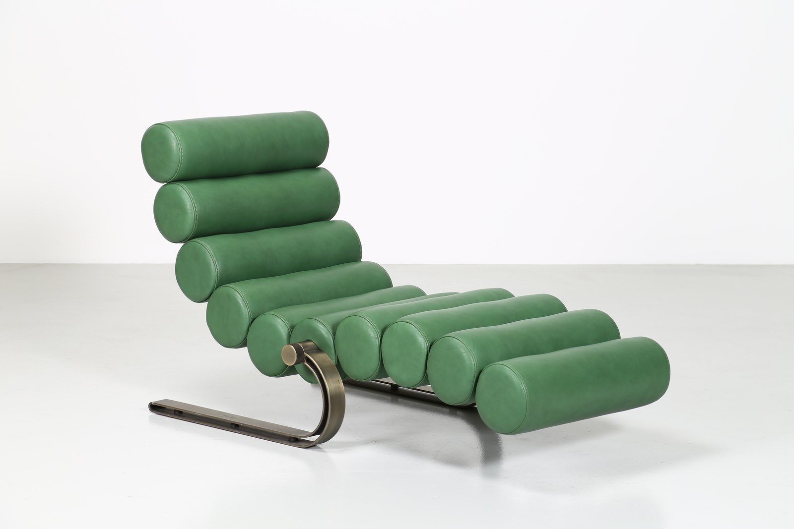 CECCHI MARZIO (1940 - 1990) Rocking chaise longue. Metallo e pelle. Cm 80,00 x 85,00 x 150,00. Chaise longue per Studio MOST, Firenze, 1974. Struttura in metallo spazzolato e rivestimento in pelle. Presente firma Mario Cecchi, numerata 01.
