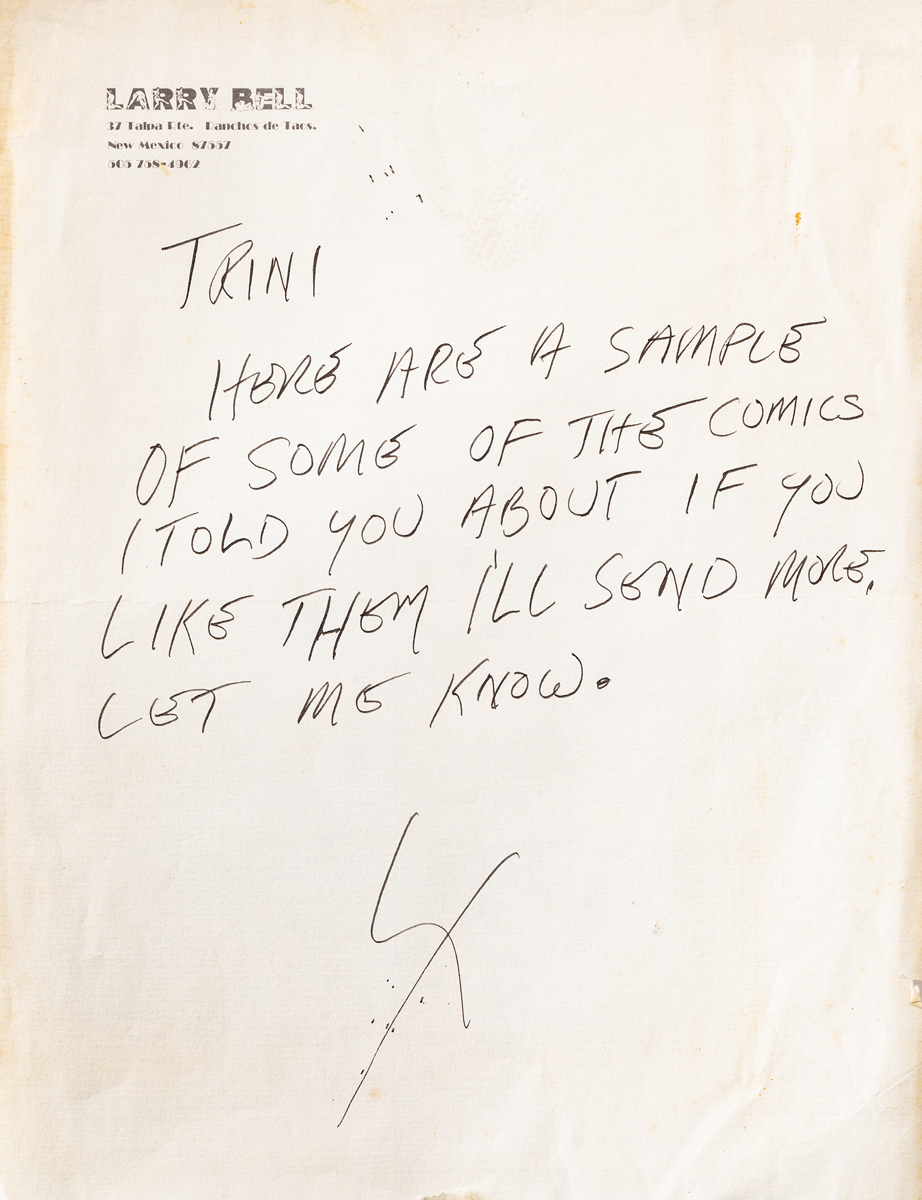 Lotto composto da una lettera autografa su carta intestata dell'Artista indirizzata al critico d'arte Tommaso Trini