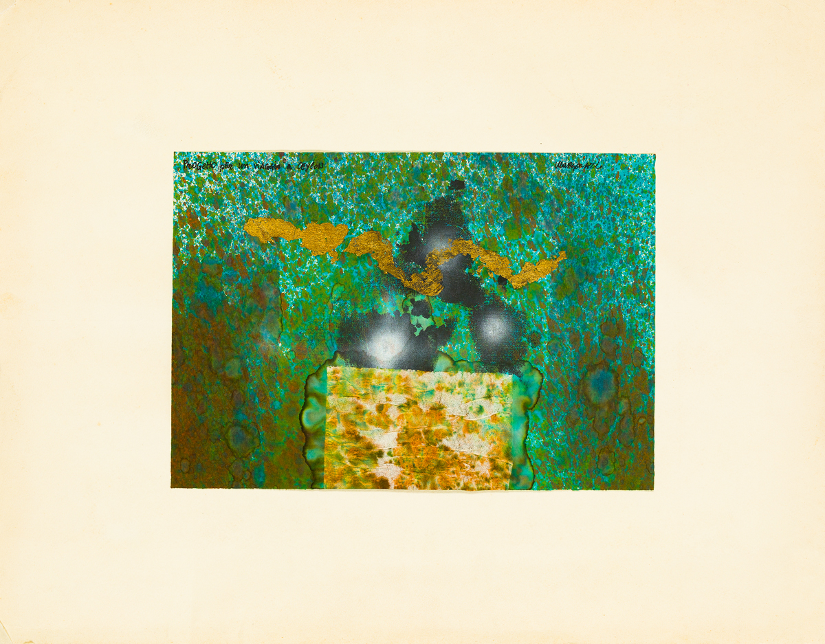 Inchiostro, acquerello, collage e foglio oro su carta cinese applicata su cartoncino