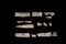 Gruppo di quindici frammenti in avorio ed osso, intagliati a motivi fitomorfi e con piccoli fiori a quattro petali e parzialmente ricoperti in foglia d'oro, pertinenti probabilmente al rivestimento di un cofanetto