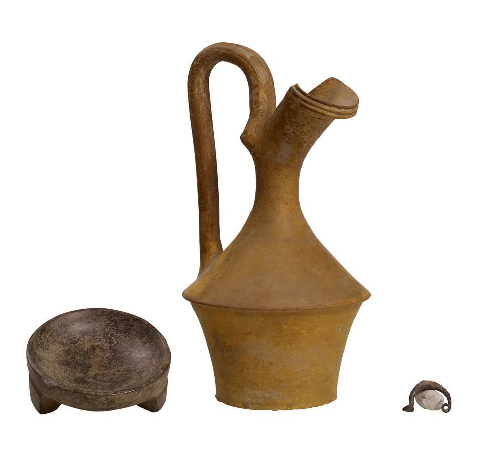 LOTTO DI OINOCHOE, FIBULA E MORTAIO