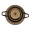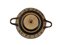 DECORAZIONE ACCESSORIA: interamente verniciata, eccetto la parte interna delle anse, un filetto nella parte interna del labbro, altro filetto nella parte inferiore della vasca, il bordo esterno e la parte inferiore del piede; ai lati delle anse due girali con palmette aperte