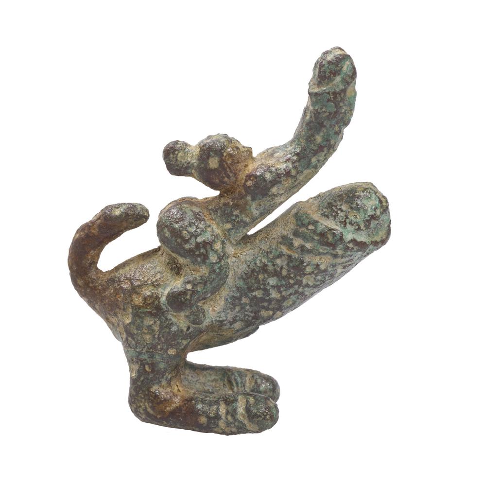 Amuleto costituito da falli multipli che imitano una figura animale stante eretta sulle zampe