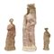 Statuetta di giovane donna con diadema sulla testa, chitone lungo fino a terra e mantello drappeggiato sopra al chitone; braccio destro disteso e sinistro piegato sul fianco; altra statuetta femminile stante con un lungo mantello che ricopre in fitte pieghe tutto il corpo; tiene il braccio destro sul petto e l'altro disteso; altra statuetta femminile stante con gamba sinistra avanzata, tiene il braccio sinistro sul petto e l'altro disteso e d indossa una veste scollata coperta dal mantello, una collana ed un alto polos (3)