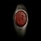 Anello a fascia bombata con castone ellittico in diaspro rosso raffigurante il una capretta in atto di brucare le foglie da un piccolo albero posto su una roccia