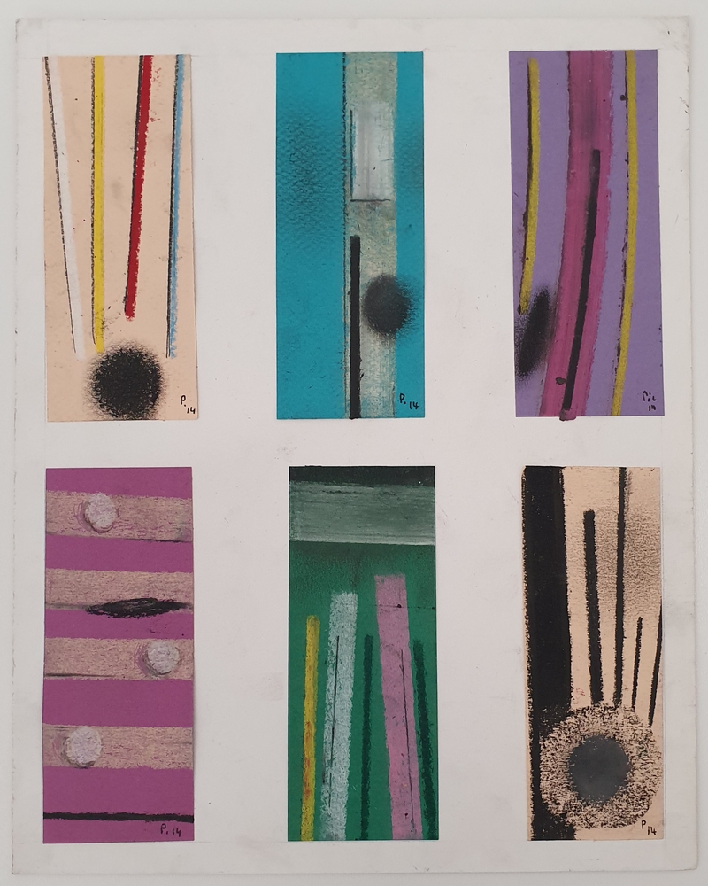 Composizione di 6 tecniche miste su cartoncino applicate su cartone