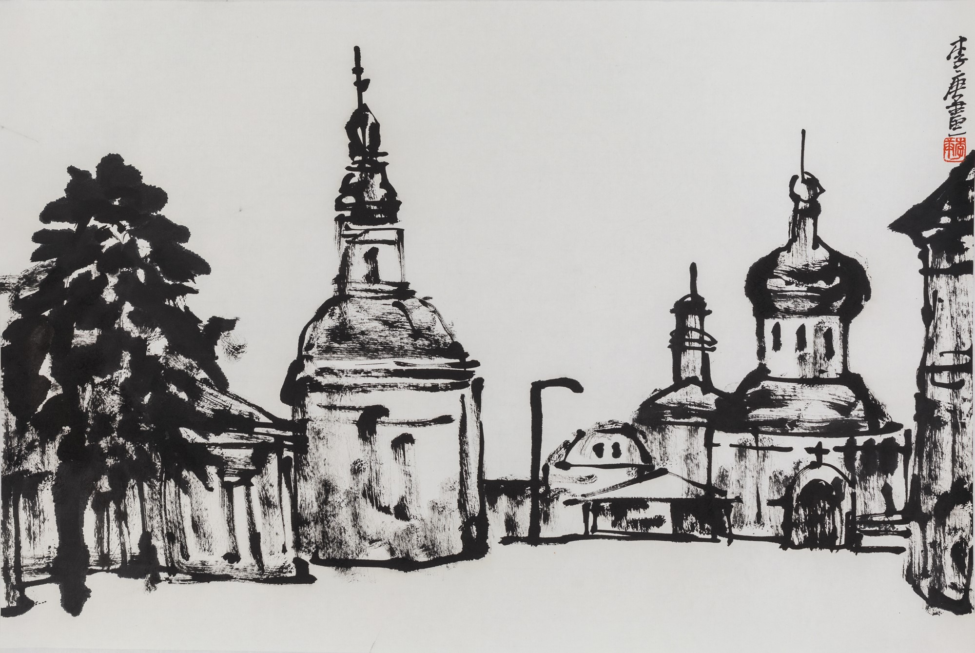LI GENG Kiev Church - Firma sul fronte in alto - 52,5X77 - Inchiostro nero su carta - 2017
