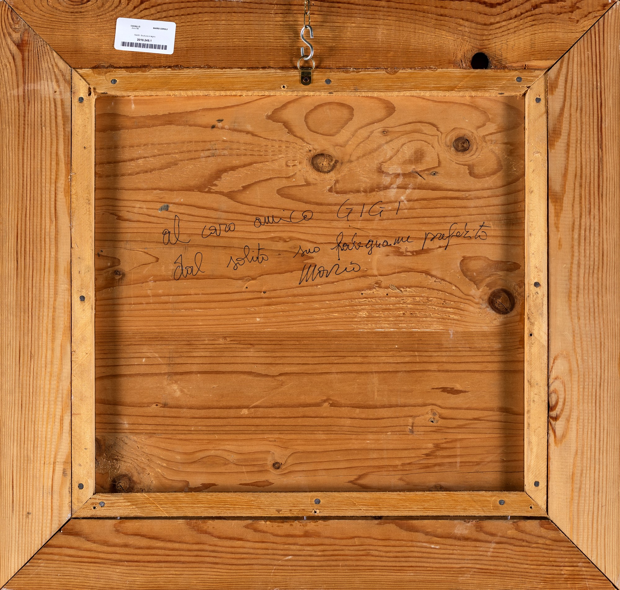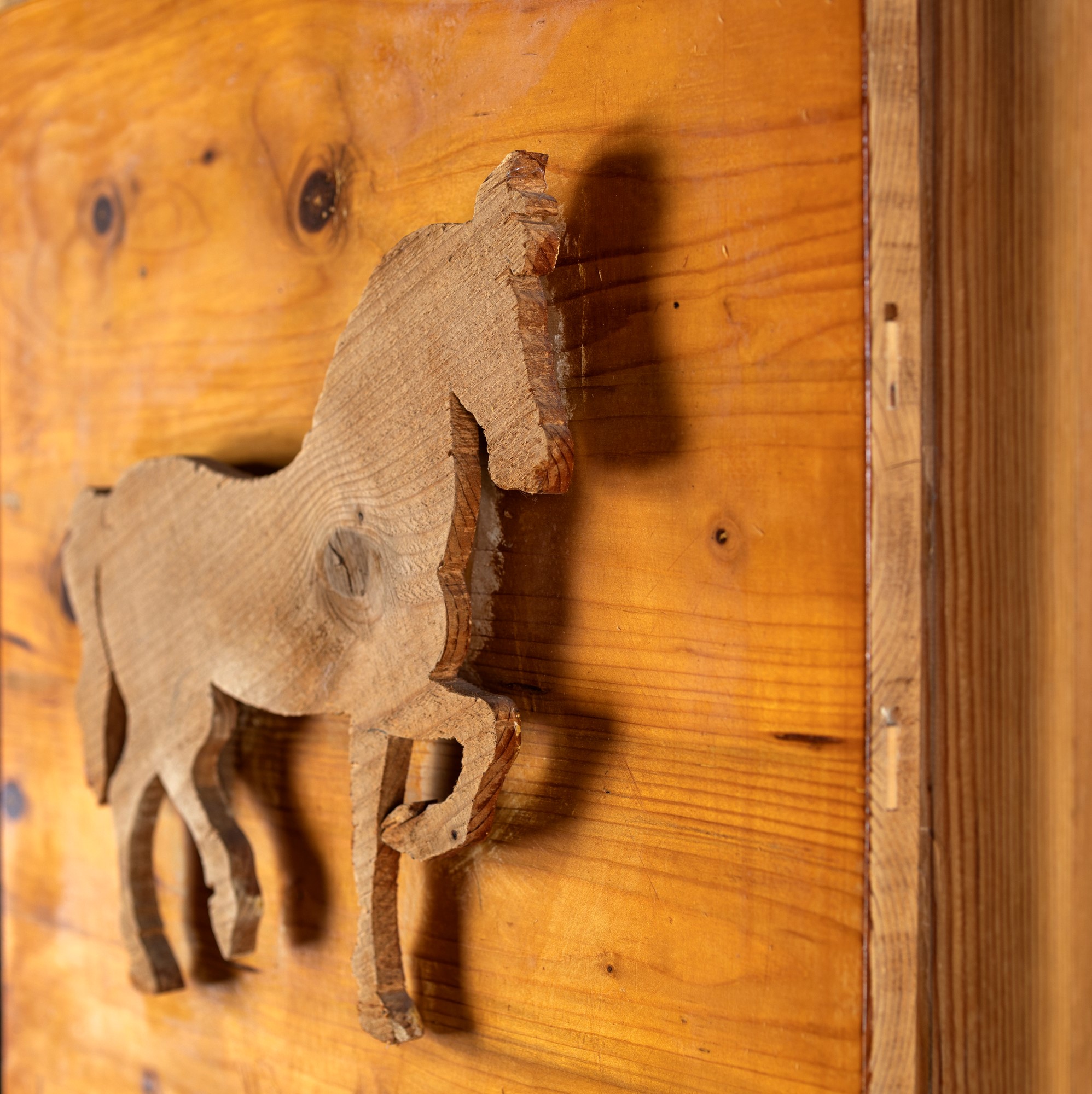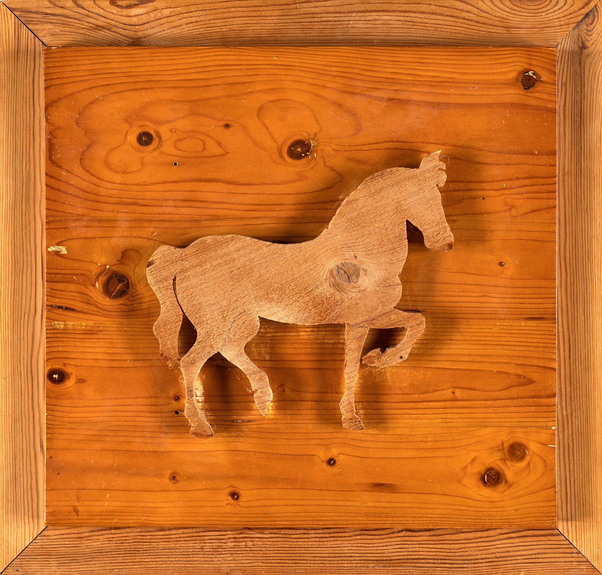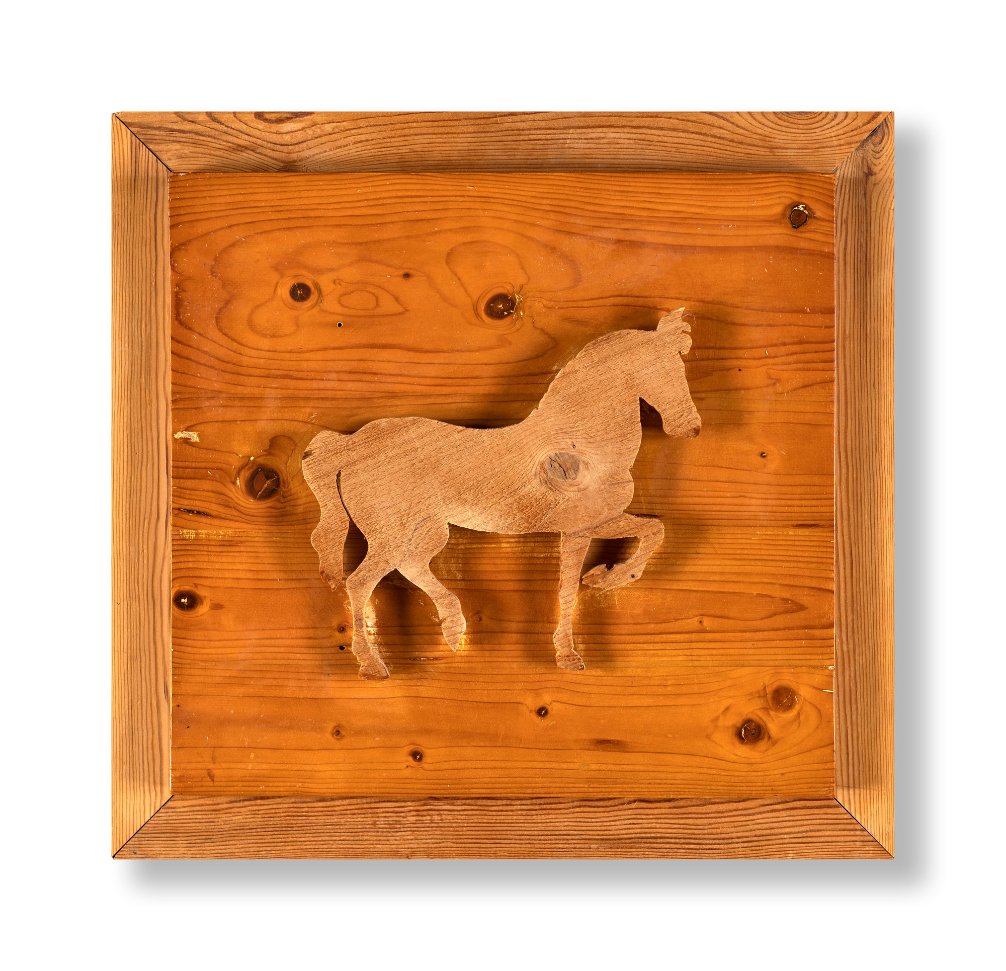 Mario Ceroli Cavallo - Al verso reca dedica "Al caro amico Gigi dal solito suo falegname preferito, Mario". - 57x59 - Scultura in legno - Anni '80