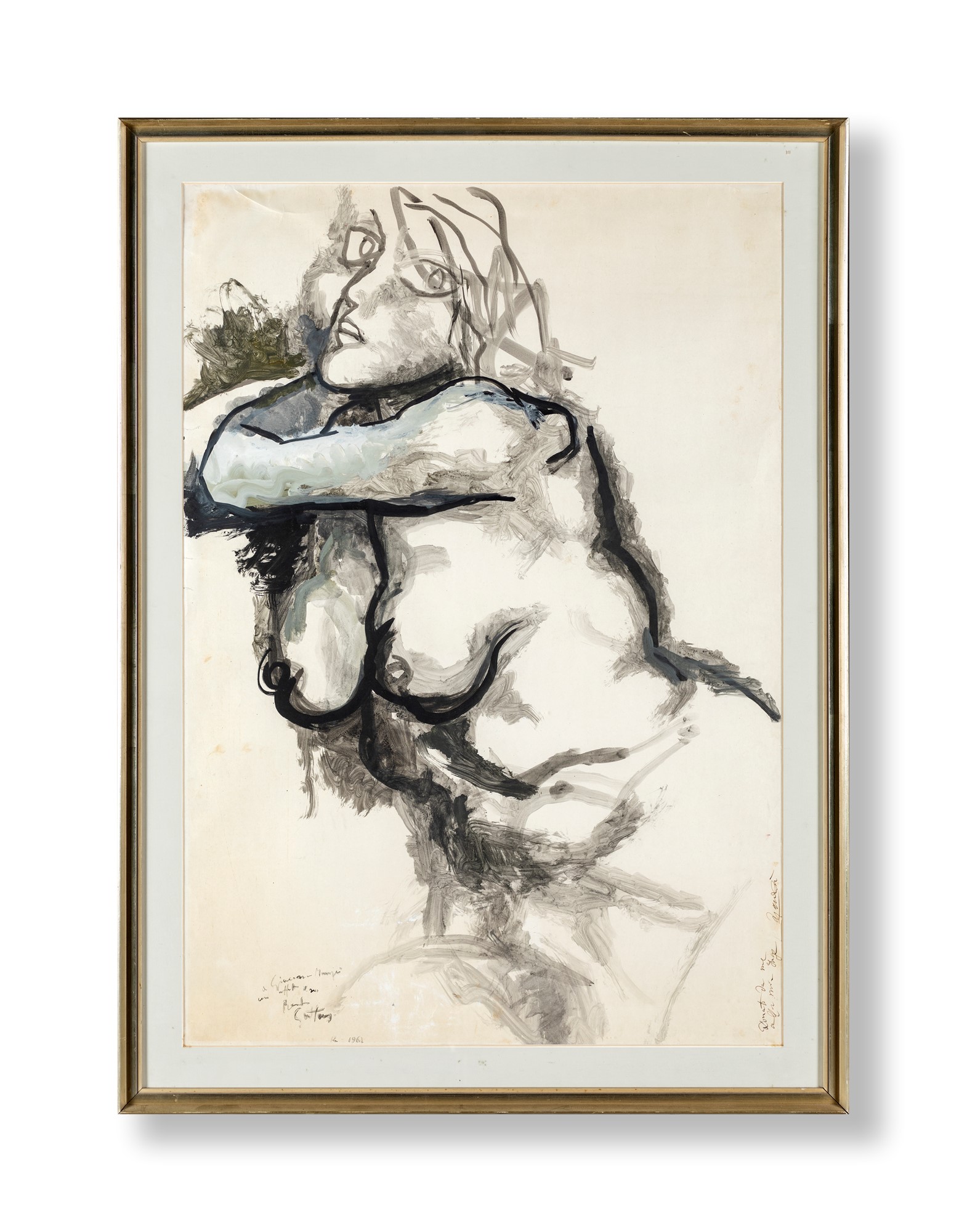 Renato Guttuso Nudo femminile - Firma, data e dedica sul fronte "A Giacomo Manzù, con affetto il suo Renato Guttuso". Sul fronte a destra reca di pugno di Manzù "Donato da me alla mia Inge, Manzù". - 100x70 - Tempera su carta - 1962