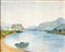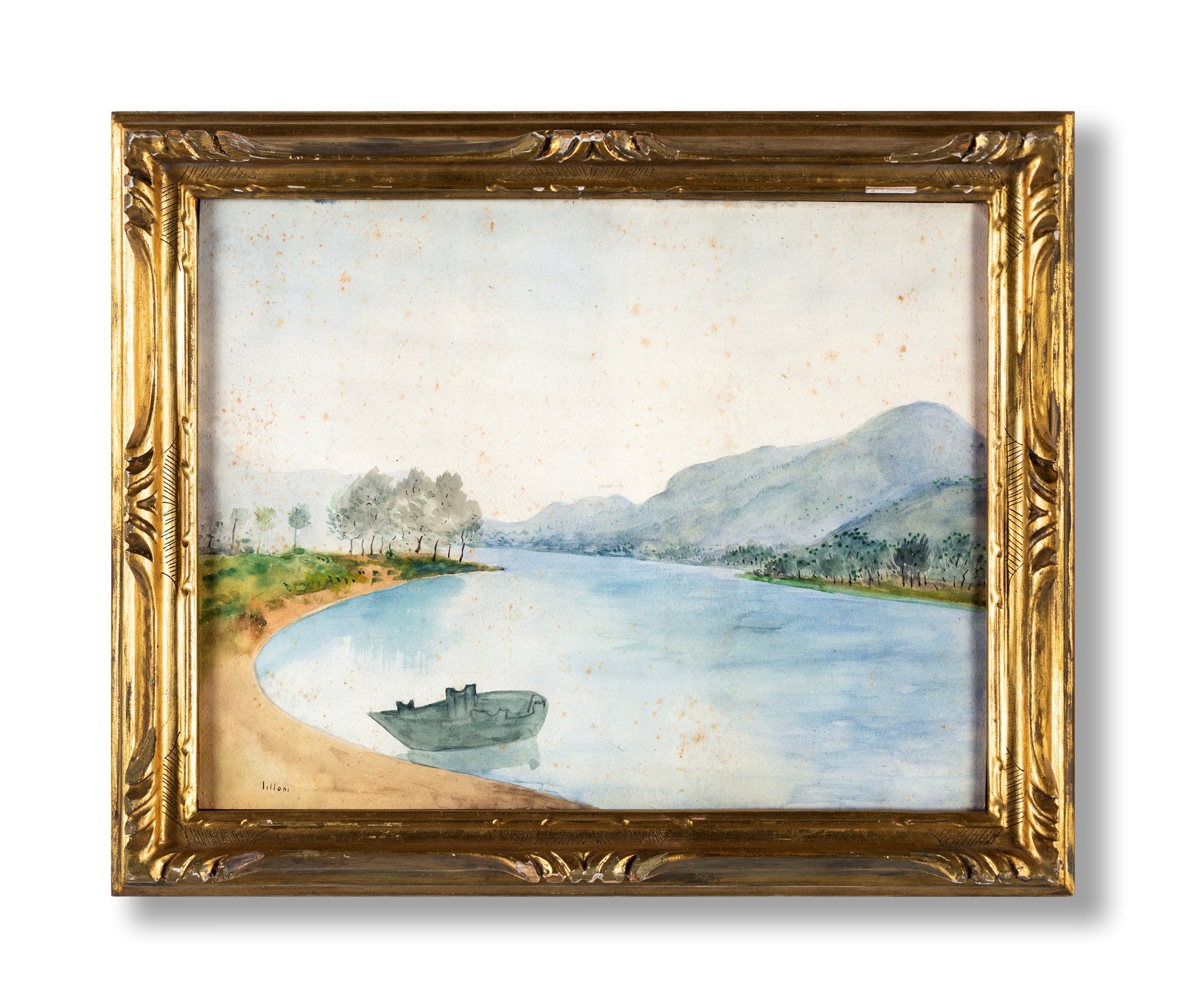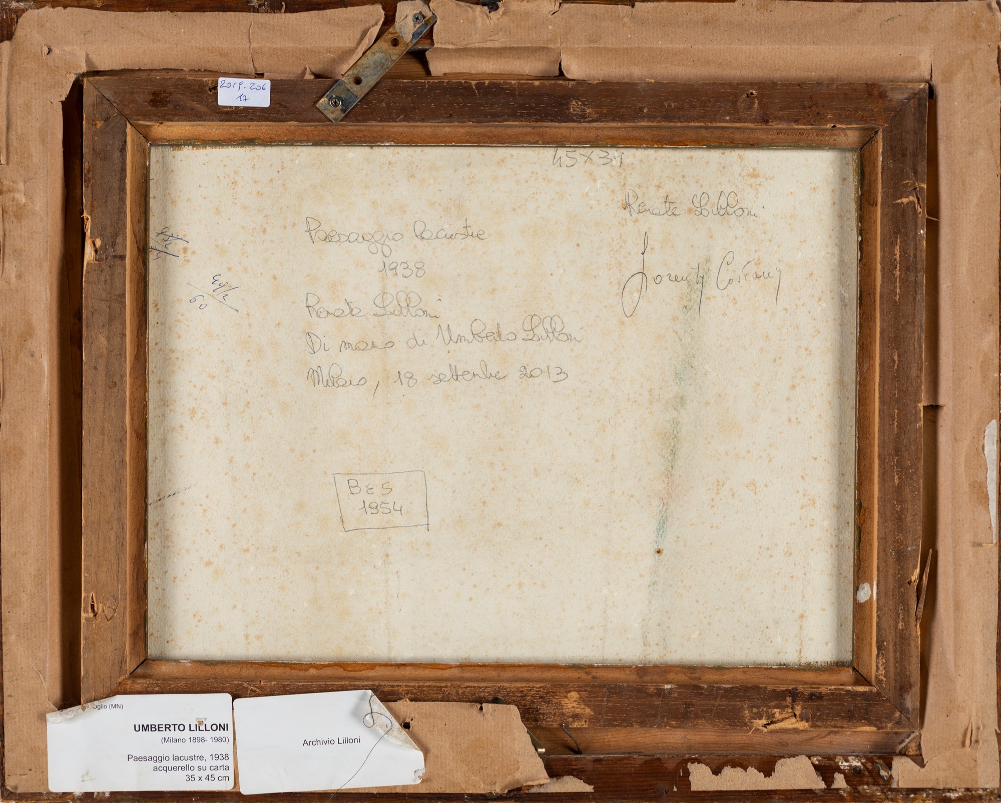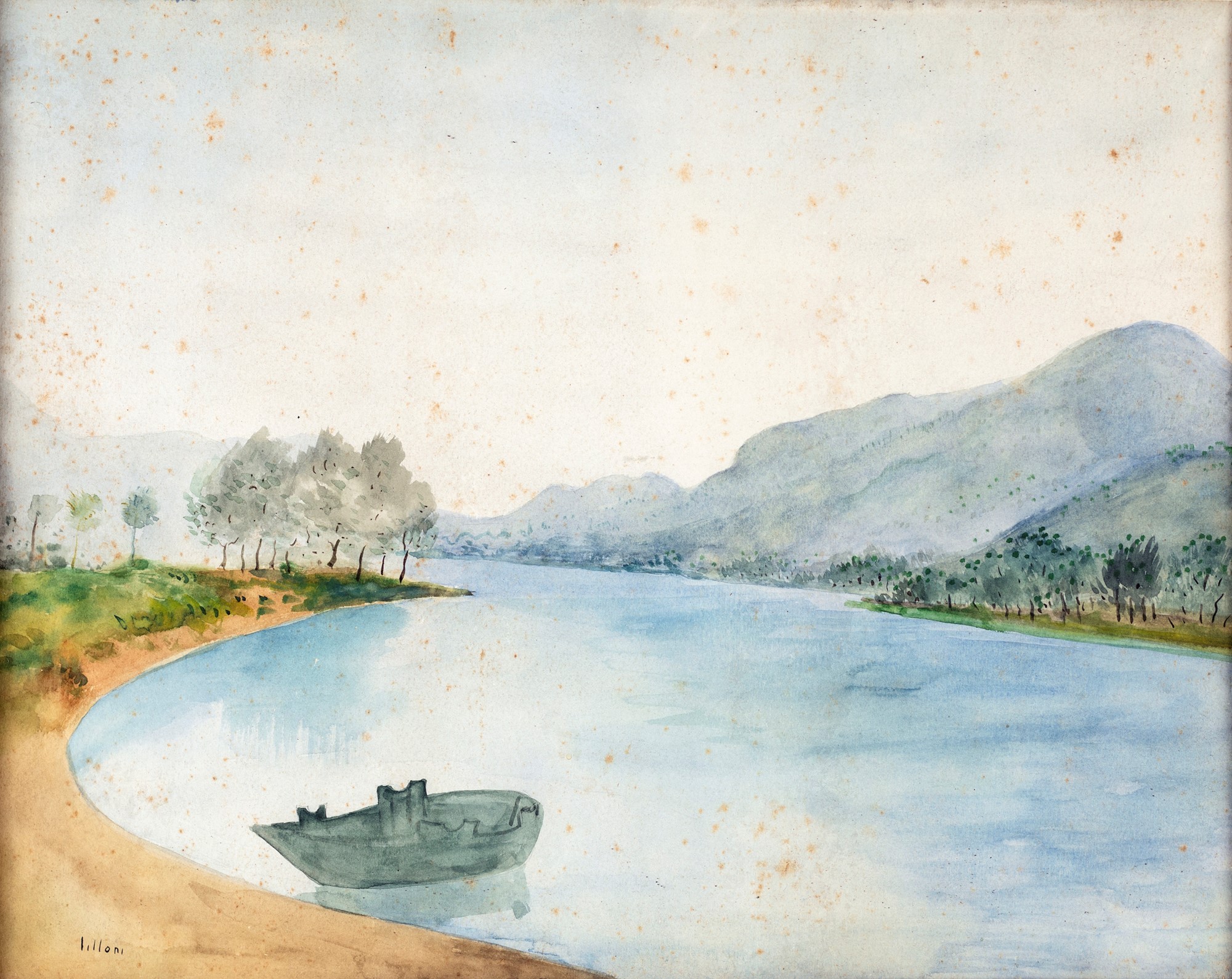Umberto Lilloni Paesaggio lacustre - Firma sul fronte in basso a sinistra "Lilloni". Al verso reca autentica di pugno di Renata Lilloni. - 35x45 - Acquarello su carta - 1938