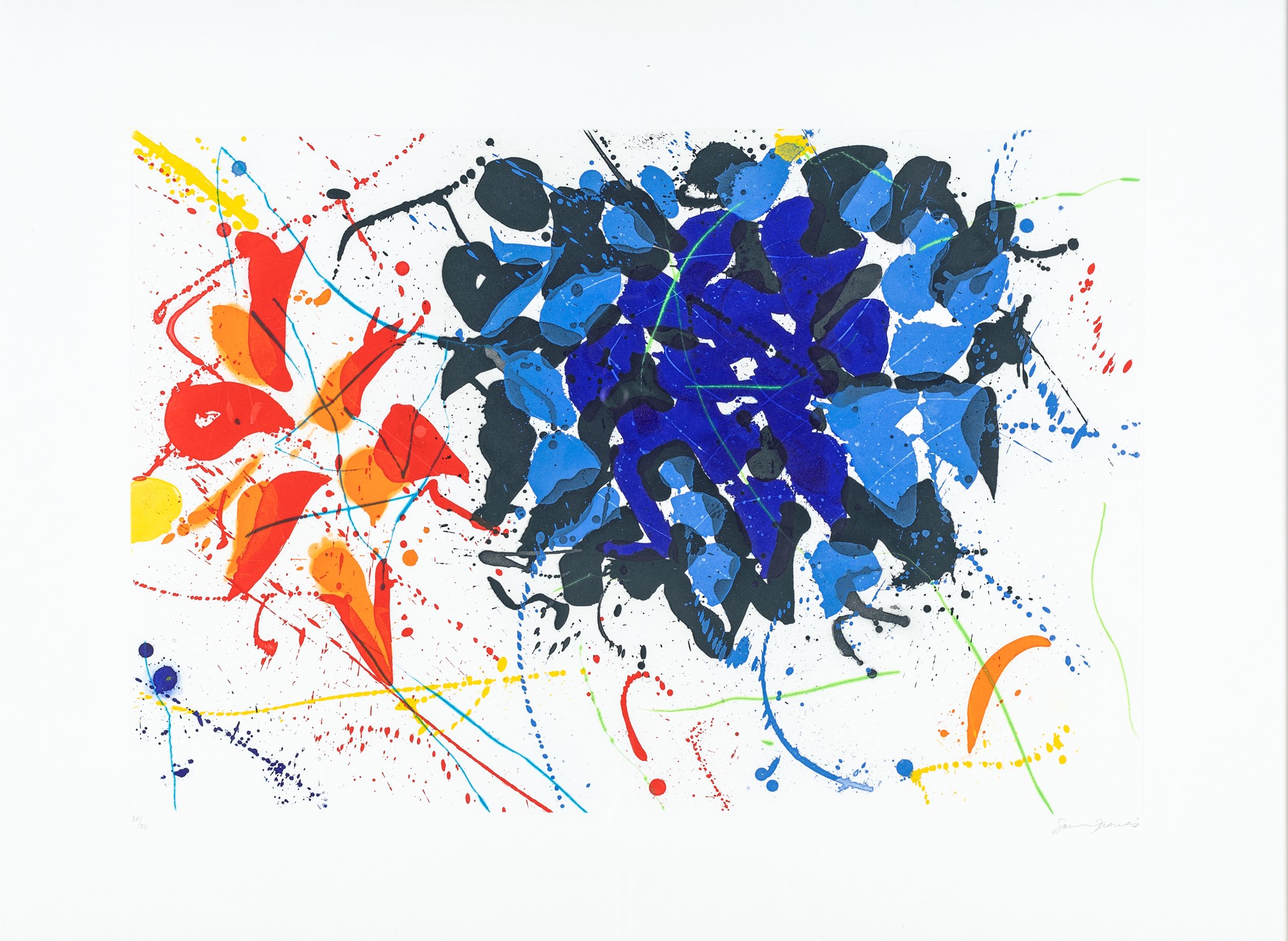 Sam Francis Senza Titolo - Sul fronte reca firma e numerazione a matita, esemplare 38/75. Timbro a secco della "Vigna Antoniana stamperia d'arte" e "Coni". - cm 70x100 - Acquaforte