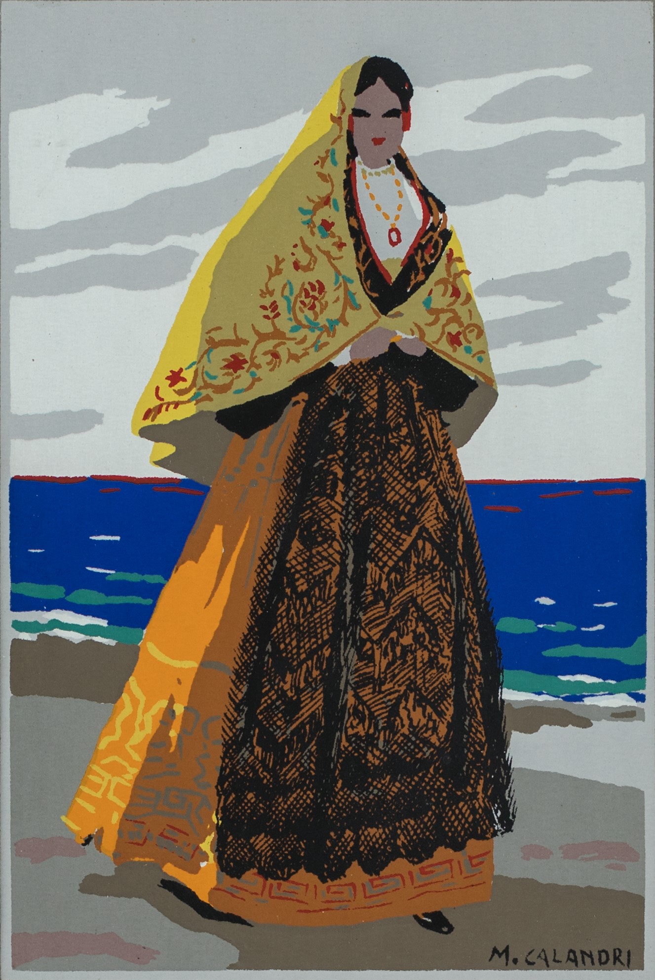 Mario Calandri Figura nel paesaggio - - 21x15 - Tempera su carta - 1953