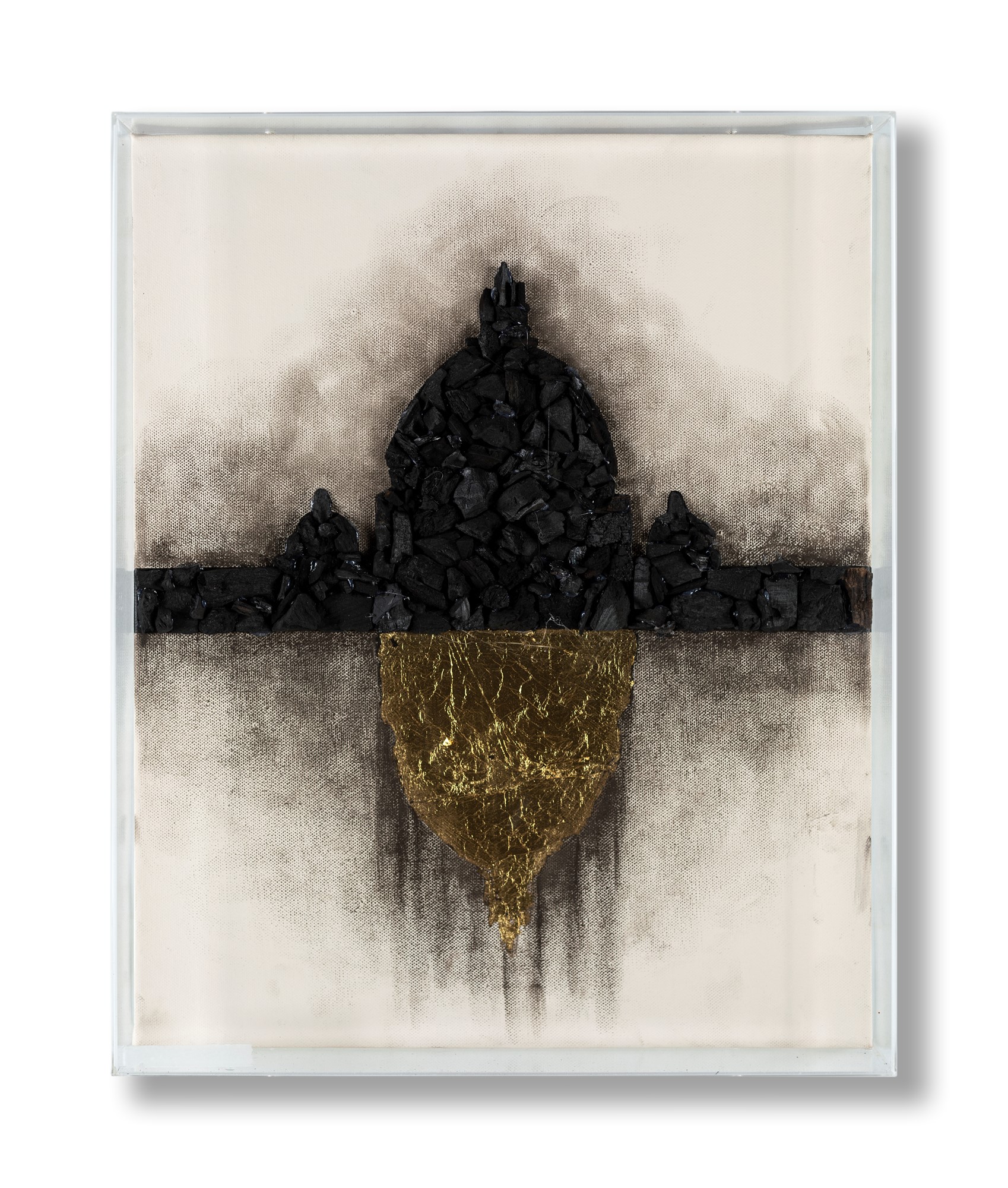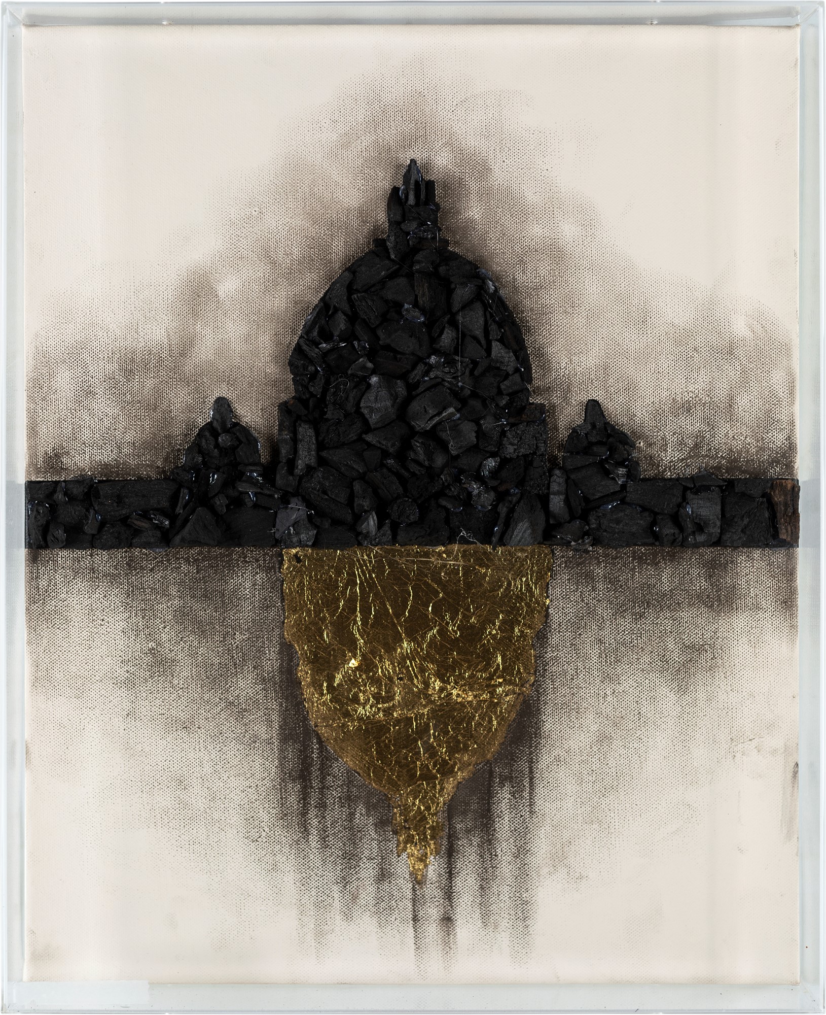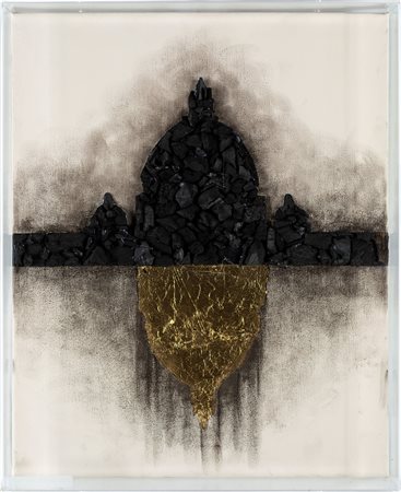 VITO BONGIORNO Black and gold - Al verso reca titolo, data e firma. - 50x40 - Oro, carbone vegetale e acrilico su tela - 2015