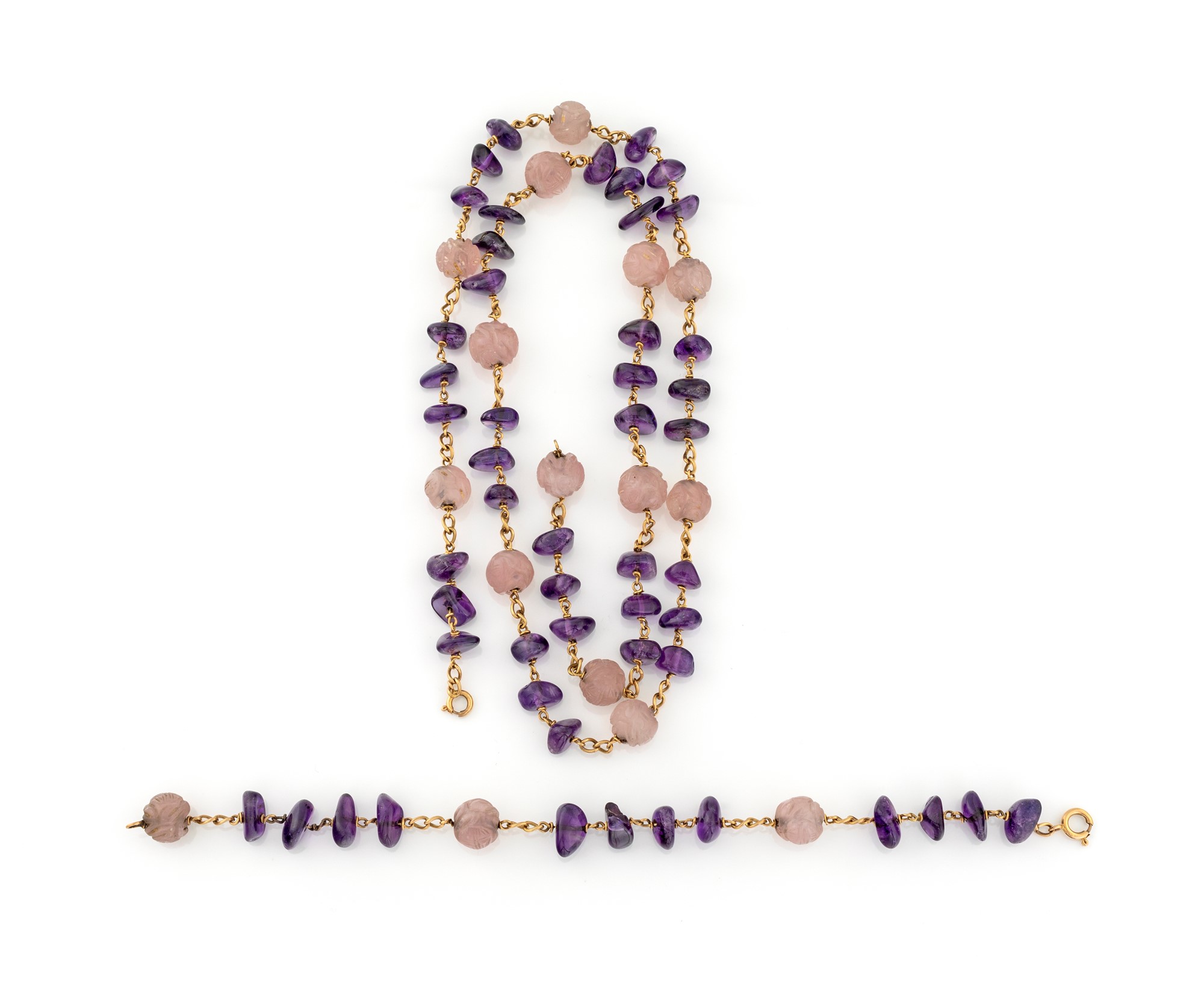 Lot 1 | COLLANA E BRACCIALE CON AMETISTA E QUARZO ROSA