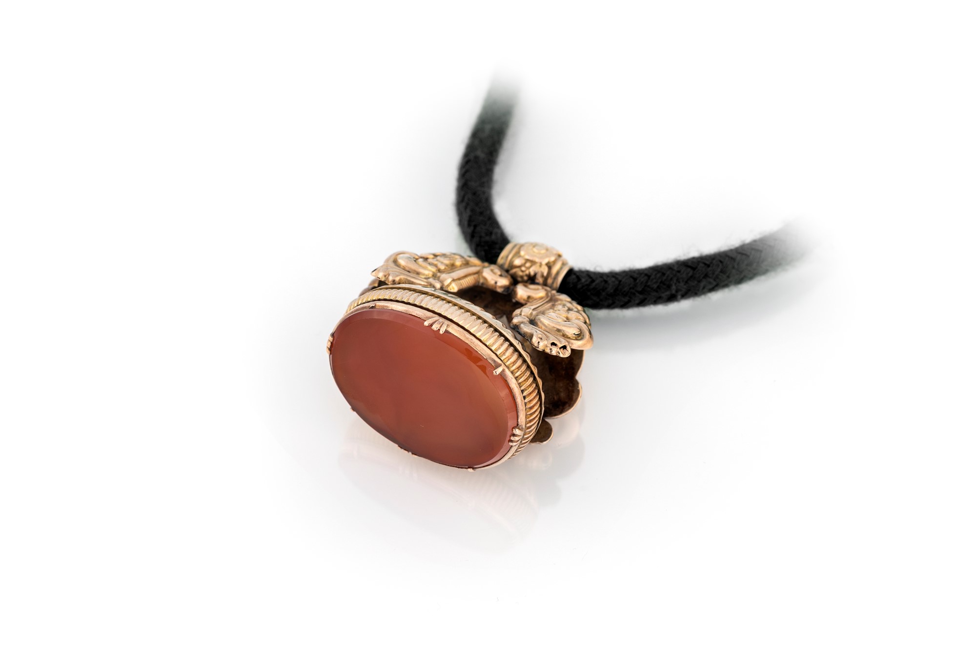 CIONDOLO CON CORNIOLA - da incidere a sigillo, epoca Vittoriana, oro giallo, g 25