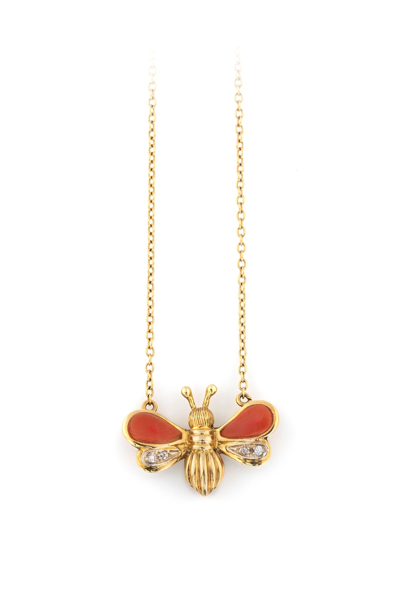 CATENINA CON FARFALLINA - in oro 750/000, ali in corallo g 4,30