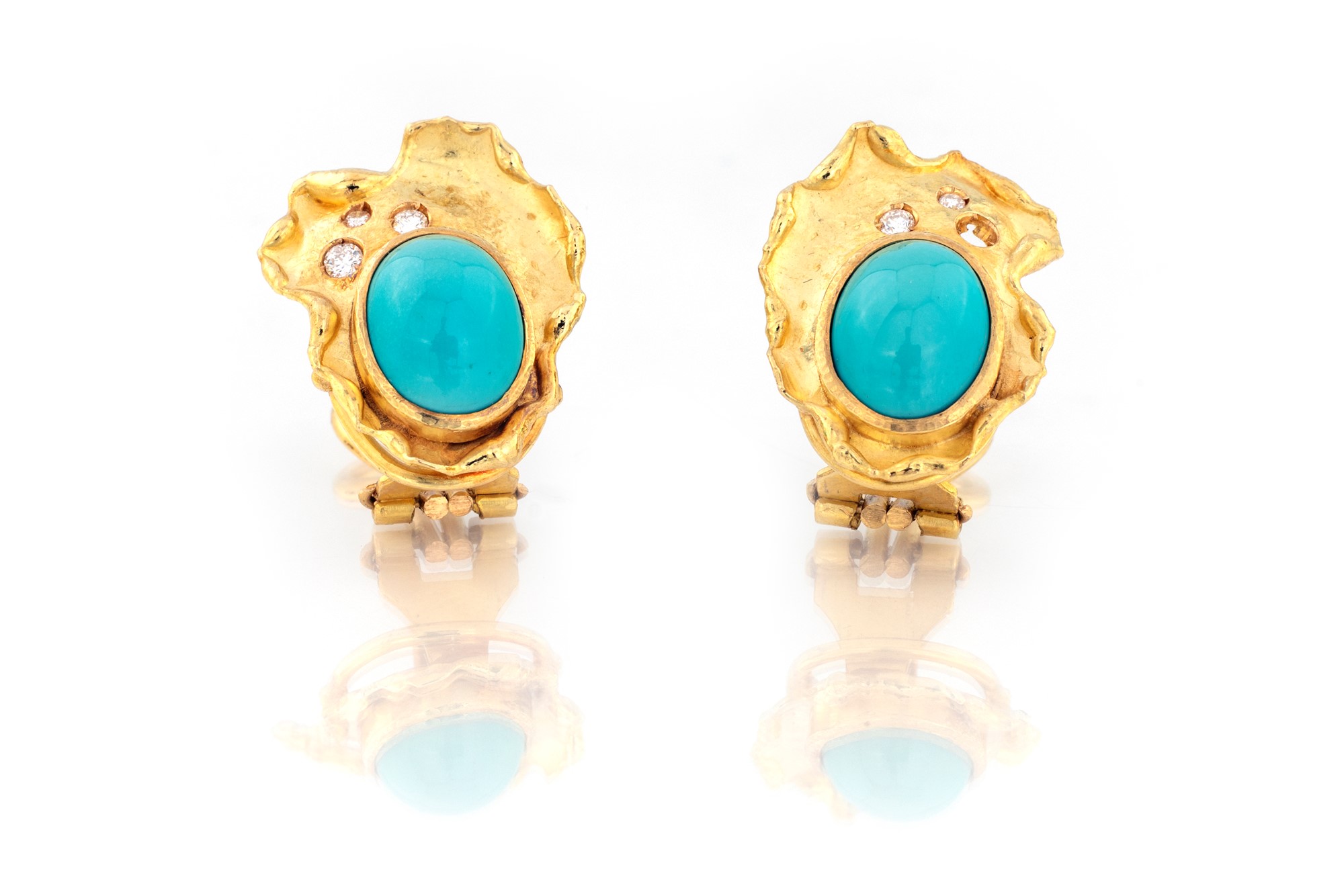 Lot 14 | ORECCHINI CON TURCHESI E DIAMANTI