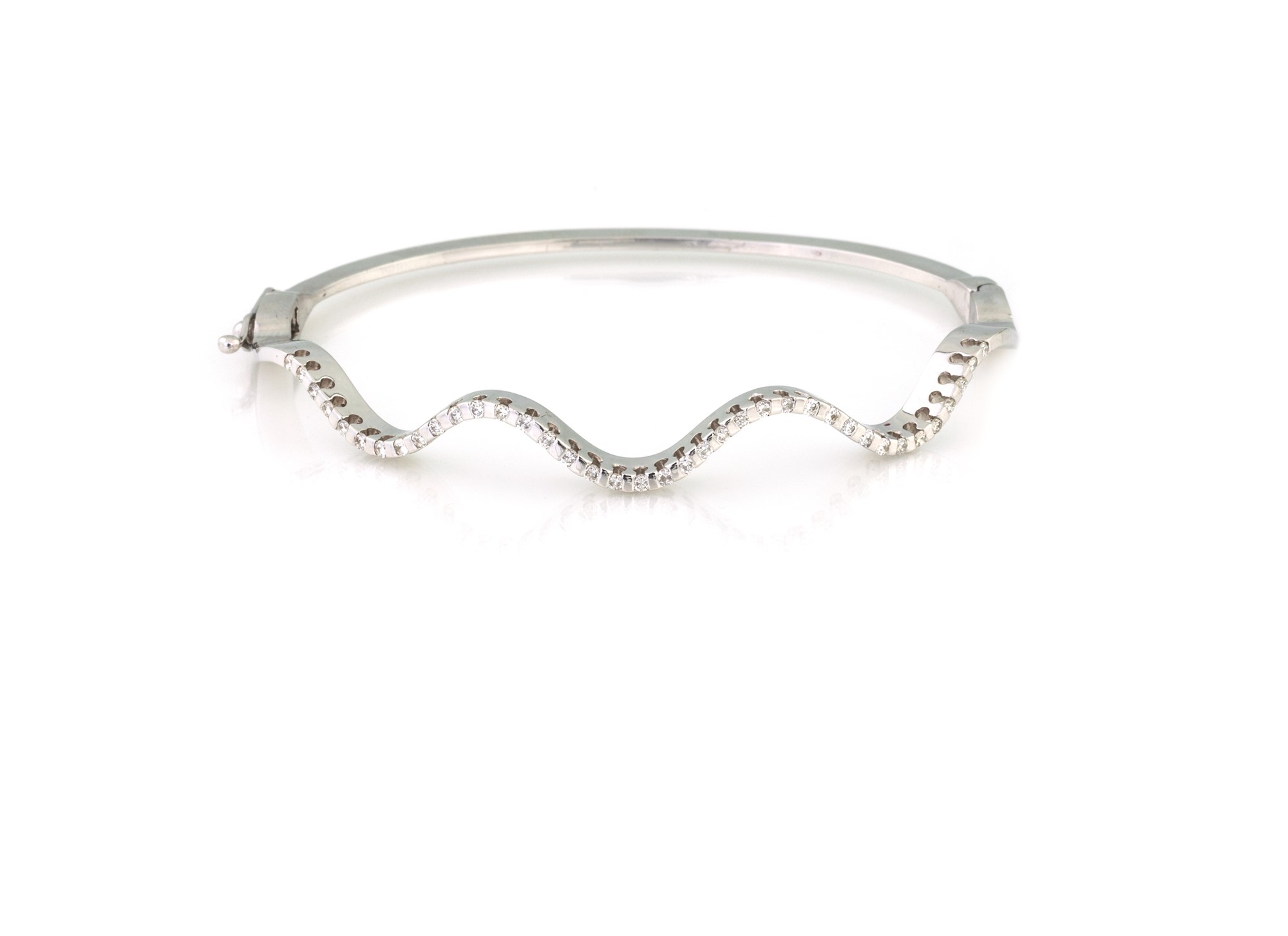 BRACCIALE ONDA - in oro bianco 750/000, modello rigido con apertura a cerniera, onda di brillanti ct 0,50, g 14