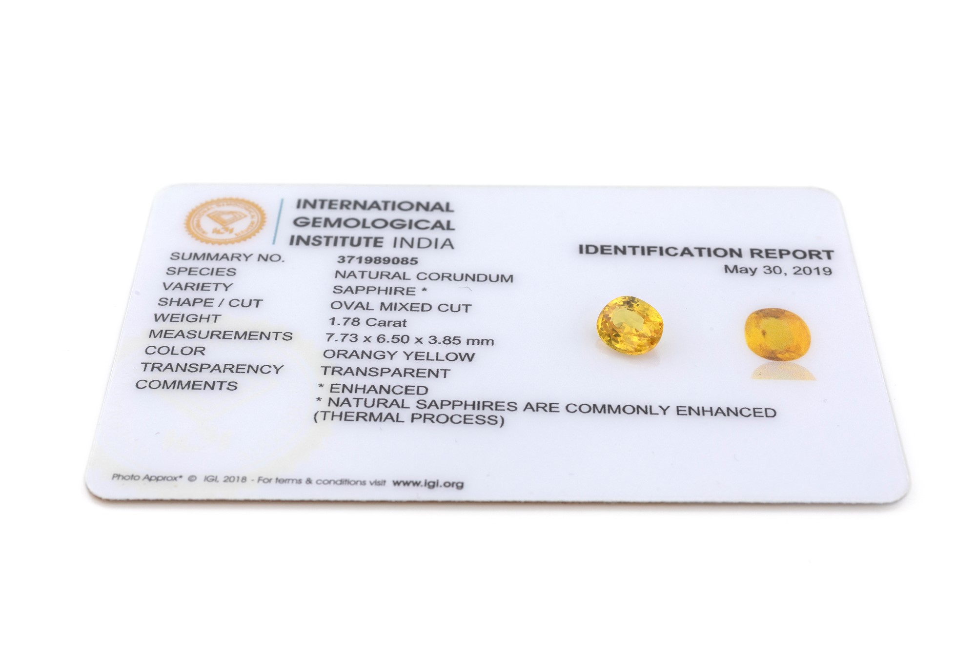 ZAFFIRO GIALLO - taglio ovale ct 1,78, certificato IGI n° 371989085