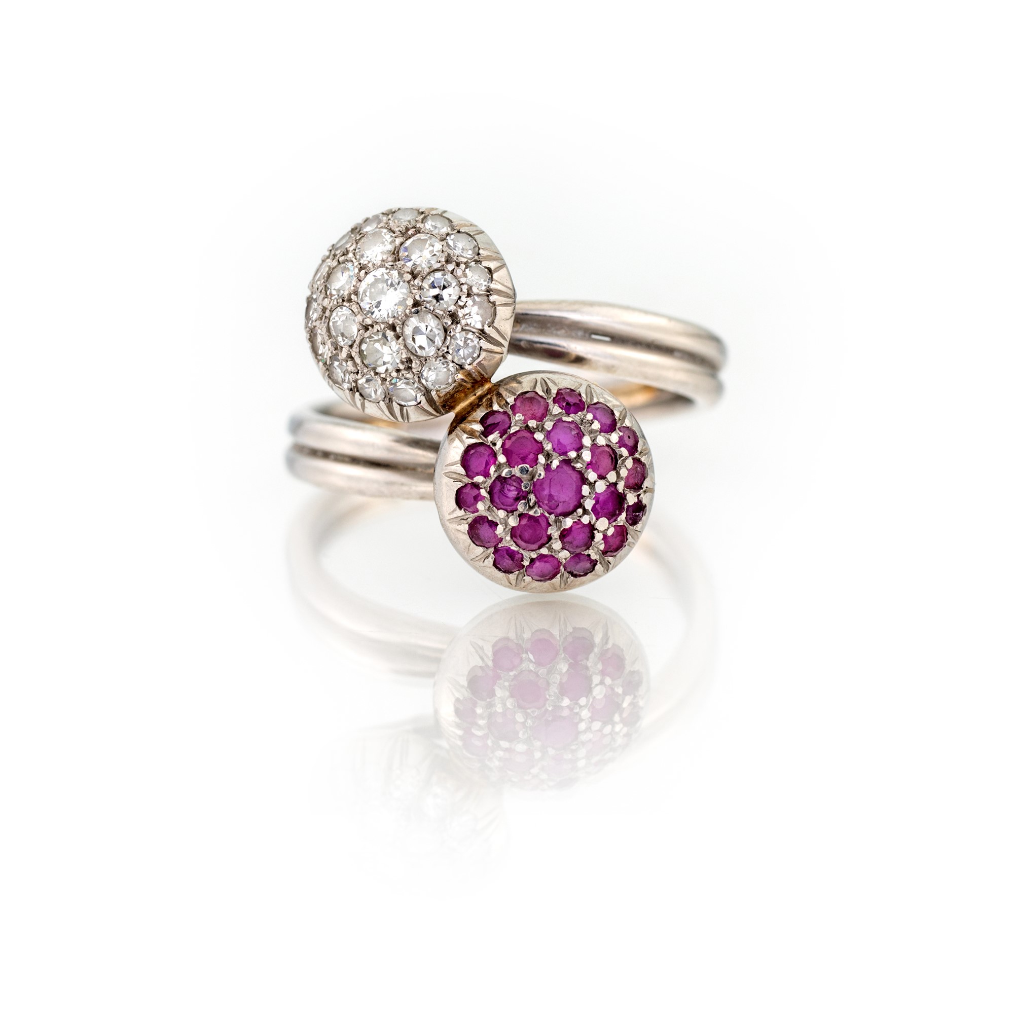 Lot 102 | ANELLO CONTRARIE' BRILLANTI E RUBINI